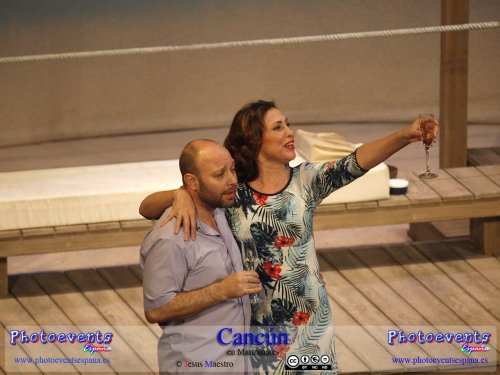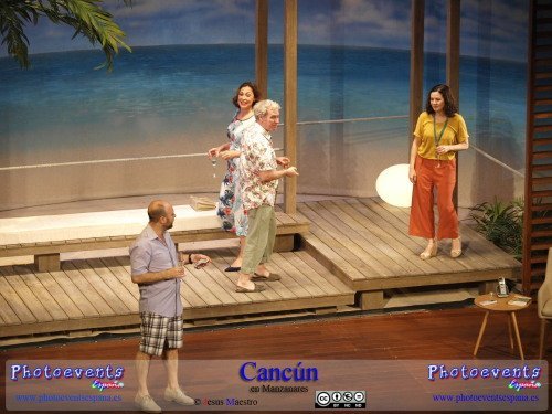 Fotografías correspondientes a la obra de teatro Cancún, protagonizada por María Barranco, Vicente Romero, Francesc Albiol y Carmen Gutiérrez, con un texto de Jordi Garcelan.
