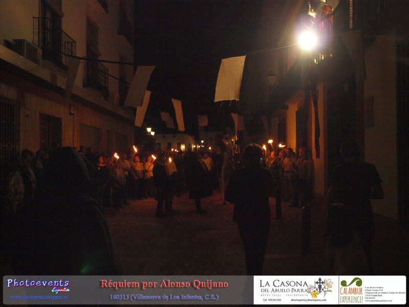 Fotografías realizadas durante la representación del espectáculo Réquiem por Don Alonso Quijano el bueno, realizándose al aire libre y cargada de efectos de luz y sonido, que tuvo lugar el pasado día 16 de Mayo en la localidad de Vva. de los Infantes, Ciudad Real.