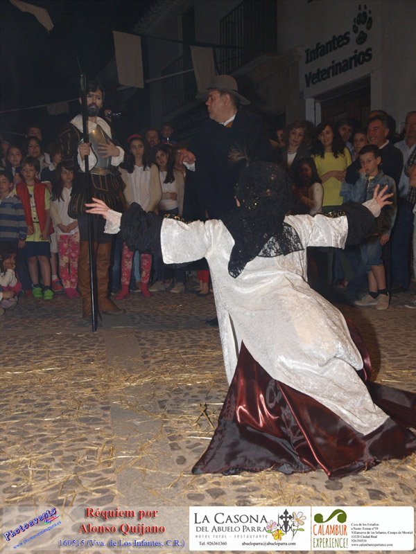Fotografías realizadas durante la representación del espectáculo Réquiem por Don Alonso Quijano el bueno, realizándose al aire libre y cargada de efectos de luz y sonido, que tuvo lugar el pasado día 16 de Mayo en la localidad de Vva. de los Infantes, Ciudad Real.
