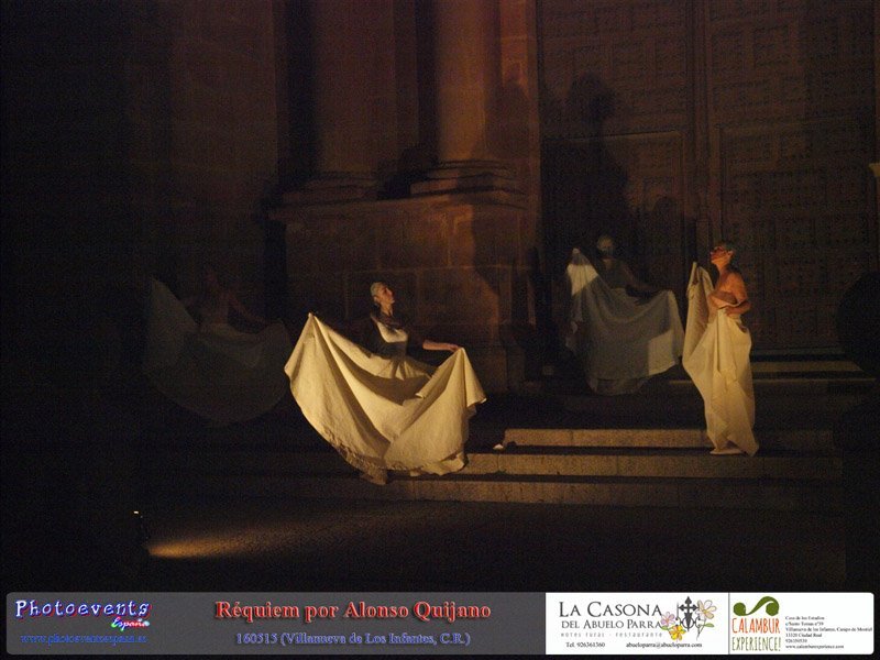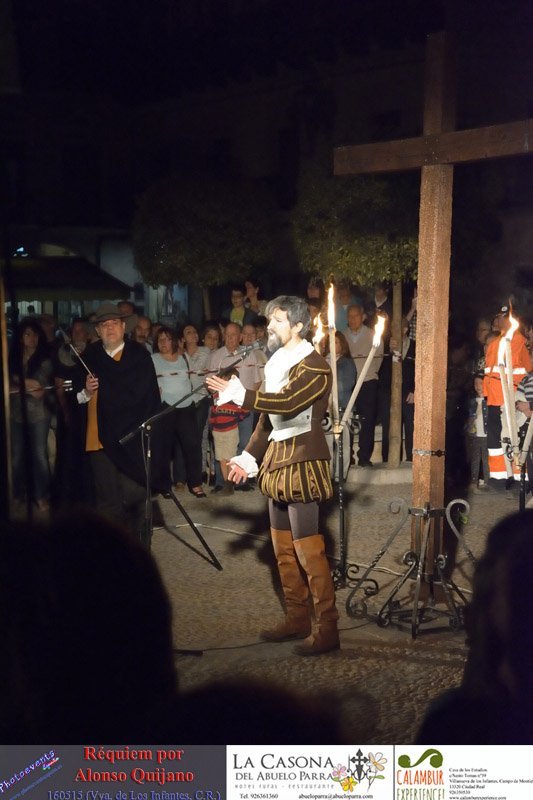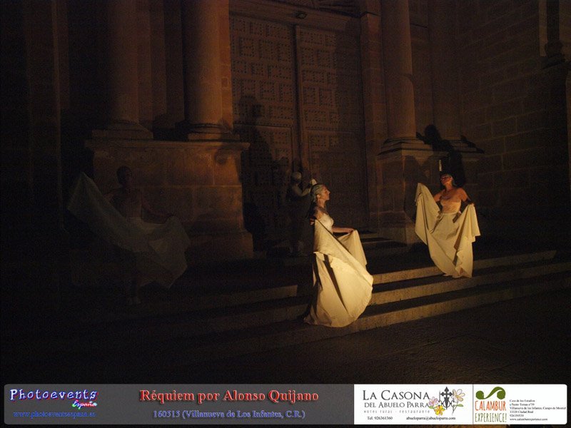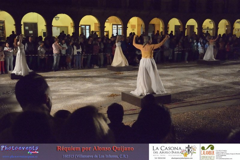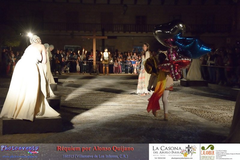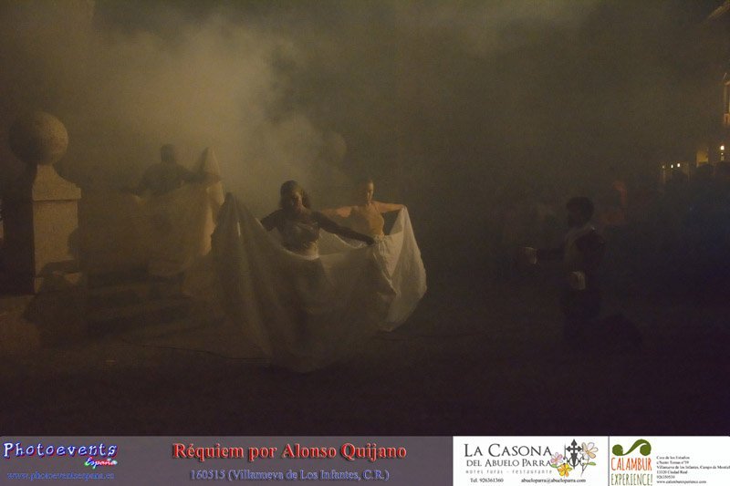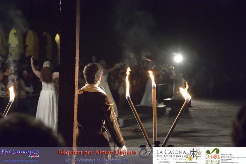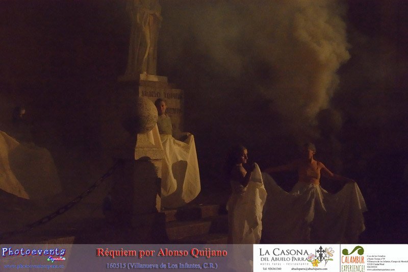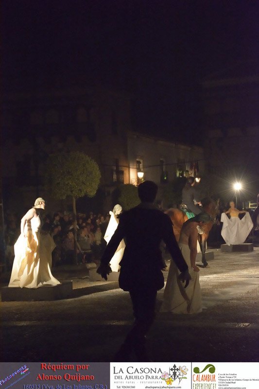 Fotografías realizadas durante la representación del espectáculo Réquiem por Don Alonso Quijano el bueno, realizándose al aire libre y cargada de efectos de luz y sonido, que tuvo lugar el pasado día 16 de Mayo en la localidad de Vva. de los Infantes, Ciudad Real.