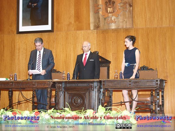 Fotografías correspondientes a la sesión de investidura de la nueva corporación municipal , siendo proclamados los distintos ediles del Partido Socialista (ganador de las elecciones), Partido popular, UPYD, Asamblea de Ciudadanos y Izquierda Unida, siendo las formaciones que salieron de las urnas del pasado 24 de Mayo en las elecciones Municipales. El acto ha tenido lugar el 13 de Junio en el Gran Teatro de la localidad de Manzanares , (Ciudad Real).