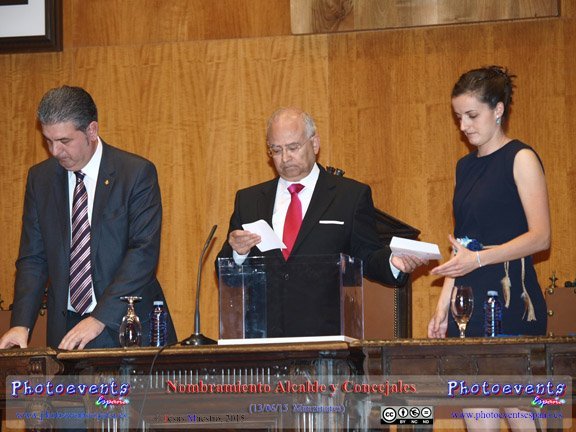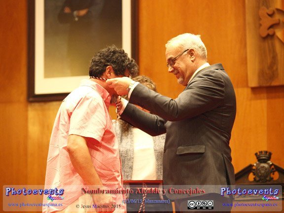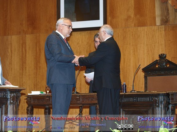Fotografías correspondientes a la sesión de investidura de la nueva corporación municipal , siendo proclamados los distintos ediles del Partido Socialista (ganador de las elecciones), Partido popular, UPYD, Asamblea de Ciudadanos y Izquierda Unida, siendo las formaciones que salieron de las urnas del pasado 24 de Mayo en las elecciones Municipales. El acto ha tenido lugar el 13 de Junio en el Gran Teatro de la localidad de Manzanares , (Ciudad Real).