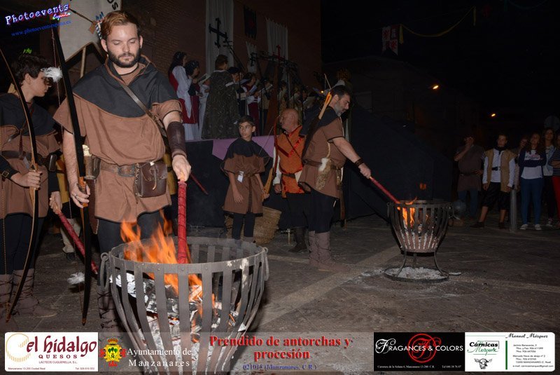 Fotografías realizadas durante el prendido y procesión de las antorchas , con motivo de las IV Jornadas Histórico Turistas, que tienen lugar durante los días 2, 3 y 4 de Octubre en la localidad de Manzanares, Ciudad Real.