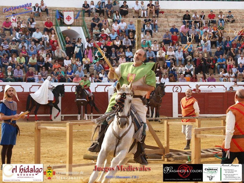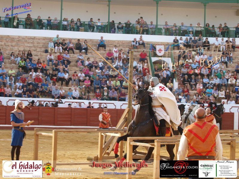 Fotografías realizadas durante el desarrollo de los distintos juegos medievales que se han realizado como ; Concurso de caballeros con la captura de anillas y destreza con la espada, concurso de arqueros, lanzadores de Venablos, forzudos y carrera de relevos. Con motivo de las IV Jornadas Histórico Turísticas, que tienen lugar durante los días 2, 3 y 4 de Octubre en la localidad de Manzanares, Ciudad Real.
