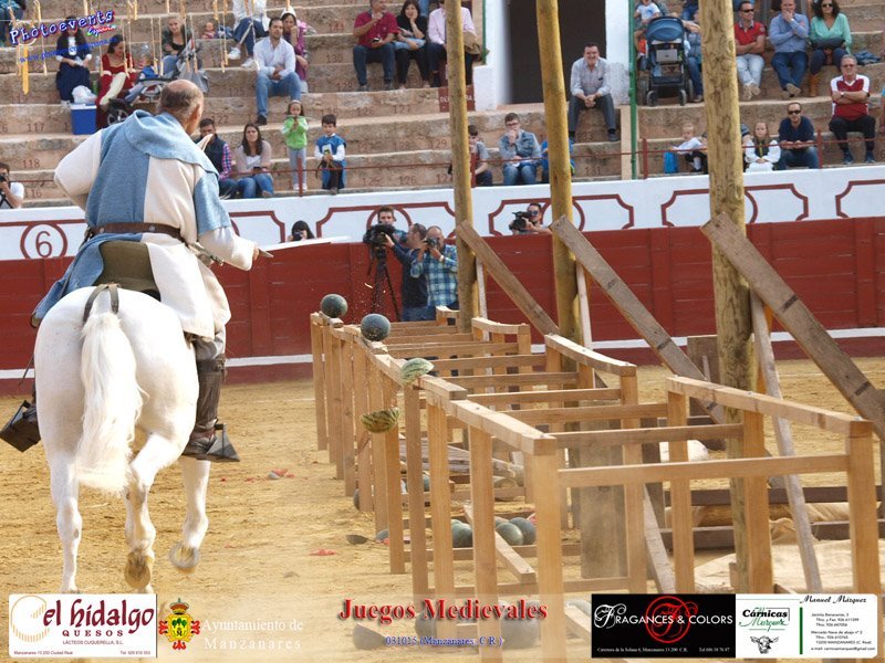 Fotografías realizadas durante el desarrollo de los distintos juegos medievales que se han realizado como ; Concurso de caballeros con la captura de anillas y destreza con la espada, concurso de arqueros, lanzadores de Venablos, forzudos y carrera de relevos. Con motivo de las IV Jornadas Histórico Turísticas, que tienen lugar durante los días 2, 3 y 4 de Octubre en la localidad de Manzanares, Ciudad Real.