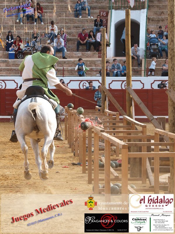 Fotografías realizadas durante el desarrollo de los distintos juegos medievales que se han realizado como ; Concurso de caballeros con la captura de anillas y destreza con la espada, concurso de arqueros, lanzadores de Venablos, forzudos y carrera de relevos. Con motivo de las IV Jornadas Histórico Turísticas, que tienen lugar durante los días 2, 3 y 4 de Octubre en la localidad de Manzanares, Ciudad Real.