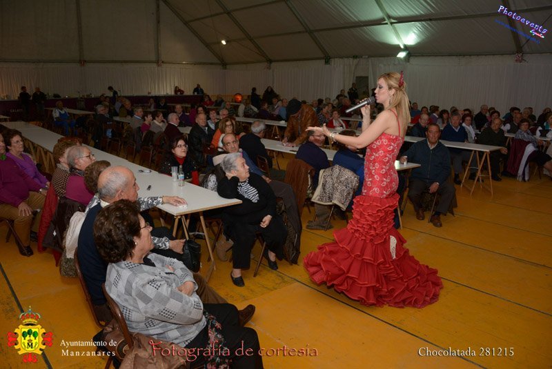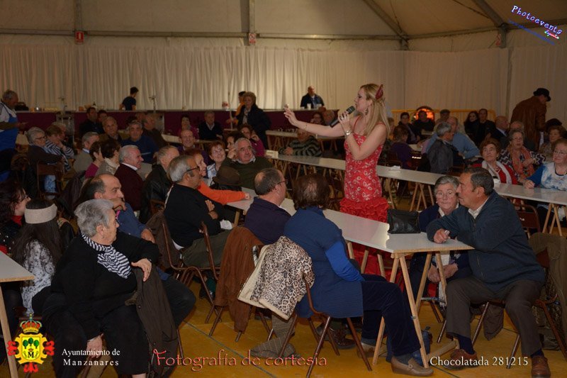 Fotografías tomadas durante la chocolatada y posterior espectáculo que tuvo lugar la tarde del pasado dia 28 de Diciembre con motivo de las fiestas Navideñas 2015 de la localidad de Manzanares, Ciudad Real.