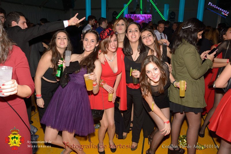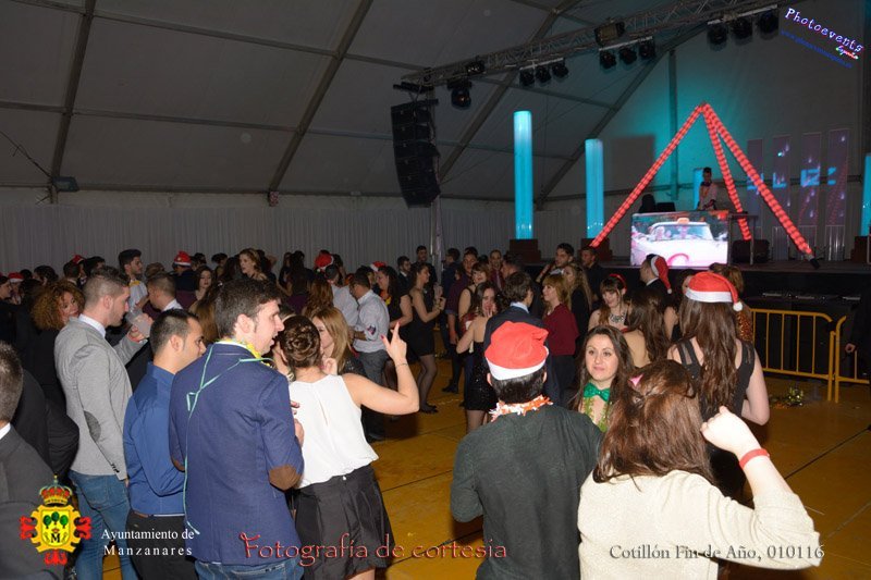Fotografías tomadas durante la noche del cotillón para recibir el nuevo año bailando al ritmo de varios Dj con la disco movil e inmortalizando esos momentos con imagenes para el recuerdo, la fiesta tenia lugar en la carpa municipal durante la madrugada del 01 de Enero con motivo de las fiestas Navideñas 2015 de la localidad de Manzanares, Ciudad Real.