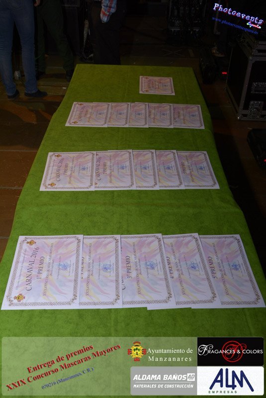 Fotografías realizadas el dia 07 de Febrero durante la entrega de premios correspondiente al XXIX concurso de Máscaras Mayores de Carnaval , organizado por el Ayuntamiento junto con otros establecimientos de la localidad de Manzanares, (Ciudad Real).
