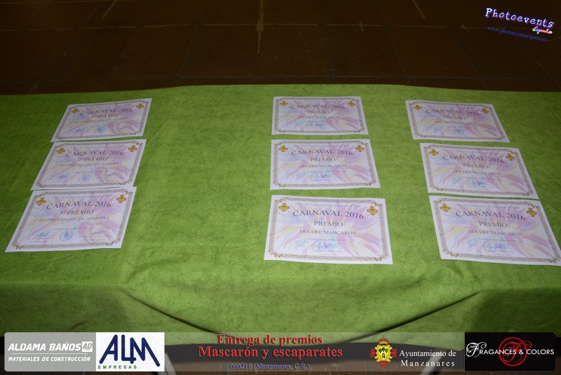Fotografías realizadas durante la entrega de premios realizada el día 090216 con motivo del día del Mascarón, y aprovechando también se hacía entrega de los correspondientes premios del concurso de escaparates de la localidad de Manzanares, Ciudad Real.