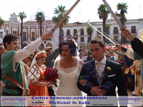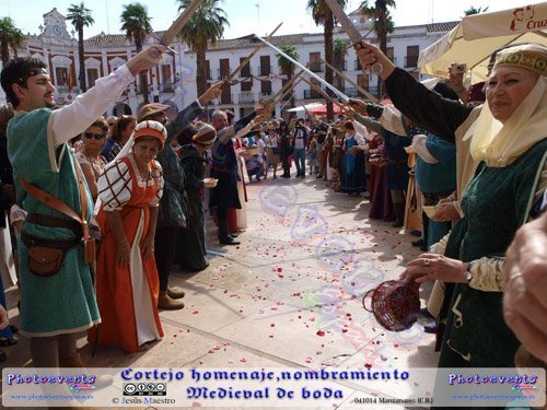 Fotografías realizadas el día 041014, durante el cortejo ofrecido poo la asociación de bailes de salón y caballeros de la encomienda de Manzanares mientras entran los novios a la iglesía y que previo a la ceremonia son nombrados caballero y dama de la encomienda. El acto tuvo lugar a la entrada de la Iglesia en la localidad de Manzanares, (Ciudad Real).