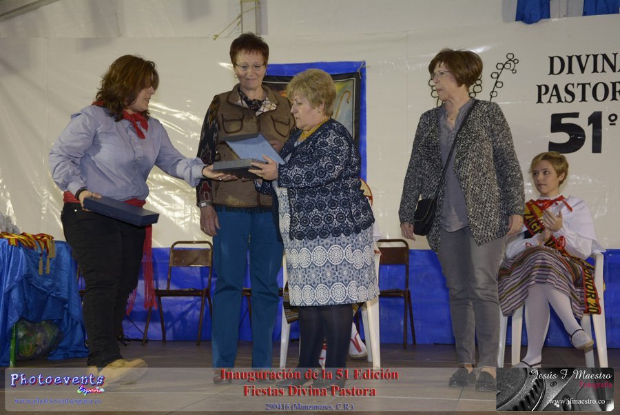Fotografías correspondientes a la Inauguración de la 51 edición de las Fiestas Divina Pastora, del año 2016, el pregón de las mismas correspondía este año a Dª Juana Pinés Maeso (escritora nacida en el barrio Divina Pastora). Posteriormente al pregón de inauguracion se procedio a otorgar distintas placas de homenaje, para terminar el acto con la proclamación de la Pastora Mayor 2016 y su corte de Pastoras de Honor, Pastorcillos y Pastorcillas.
