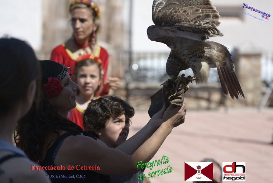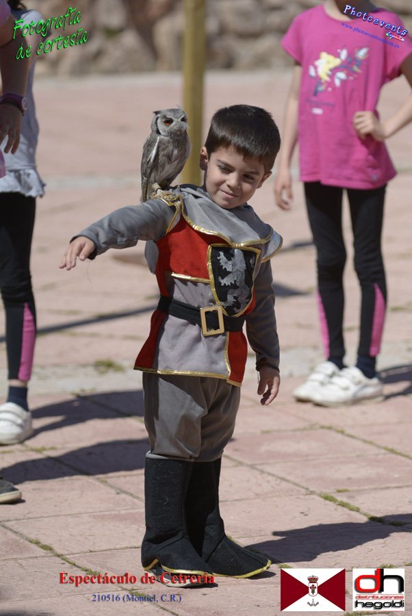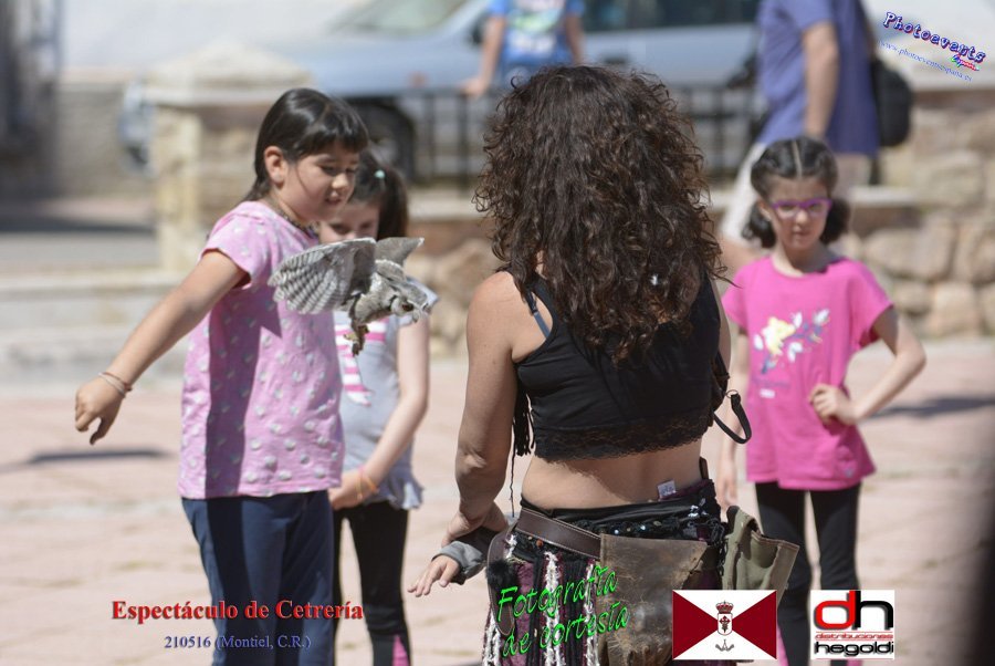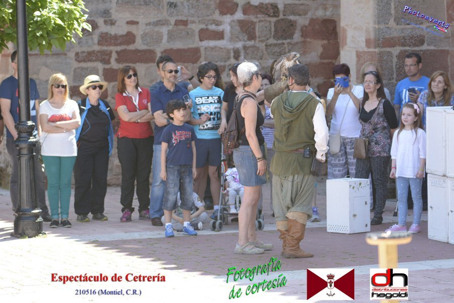 Espectáculo de Cetrería con distintas aves y con un público que pudo experimentar lo que se siente siendo cetrero con las distintas aves posándose en sus manos. El espectáculo tuvo lugar en las XLII Recreación Histórica Medieval durante los días del 20 al 22 de Mayo, en la localidad de Montiel, Ciudad Real, España.