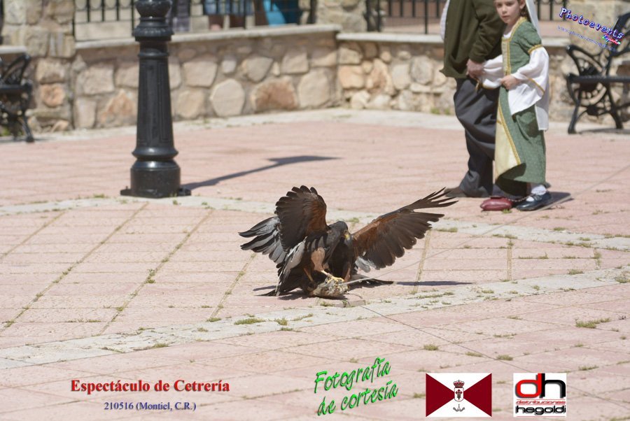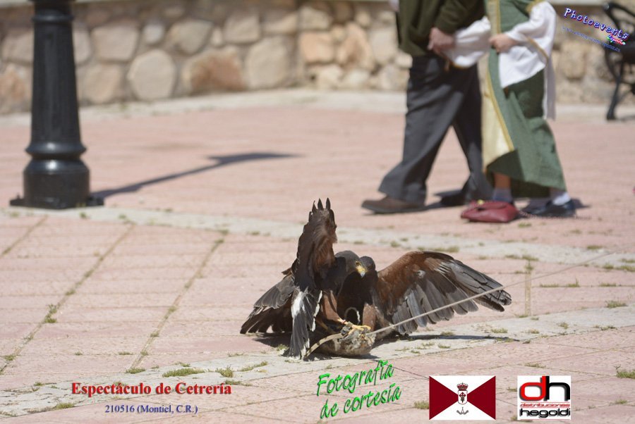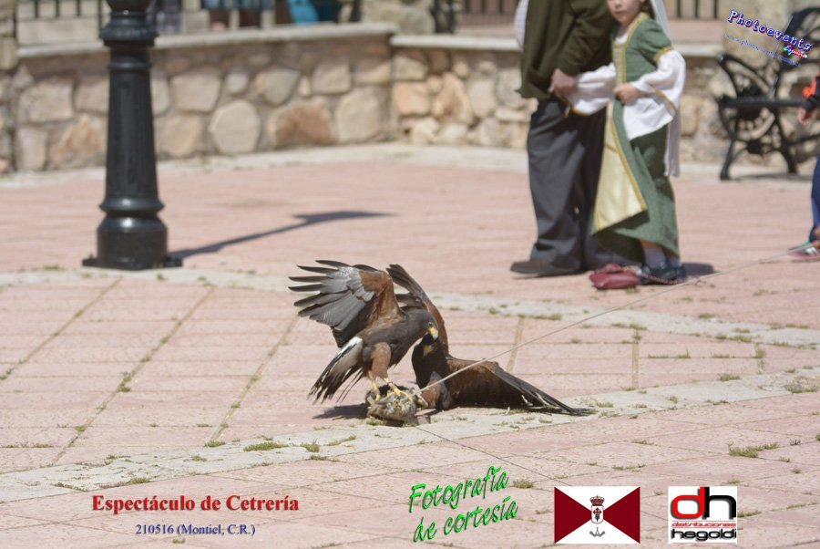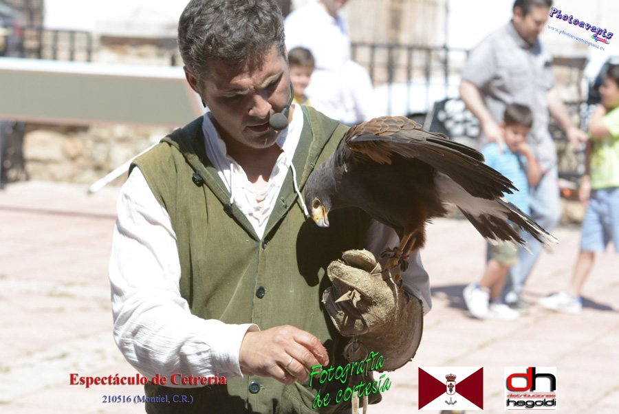 Espectáculo de Cetrería con distintas aves y con un público que pudo experimentar lo que se siente siendo cetrero con las distintas aves posándose en sus manos. El espectáculo tuvo lugar en las XLII Recreación Histórica Medieval durante los días del 20 al 22 de Mayo, en la localidad de Montiel, Ciudad Real, España.