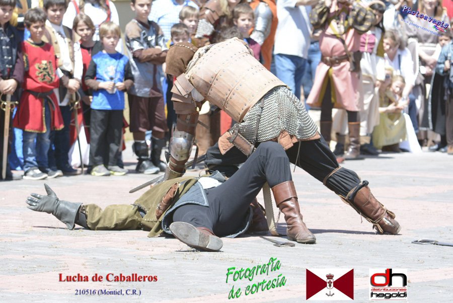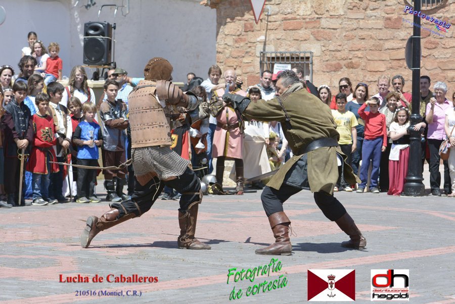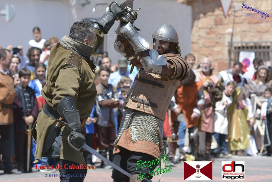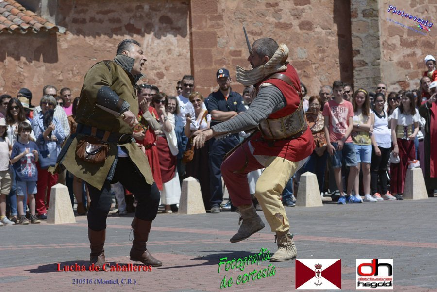 Lucha de Caballeros de Pedro I y Enrique II, realizado por el grupo de La Corte delle Spade (Italia), el acto tuvo lugar en las XLII Recreación Histórica Medieval, durante los días del 20 al 22 de Mayo, en la localidad de Montiel, Ciudad Real, España.
