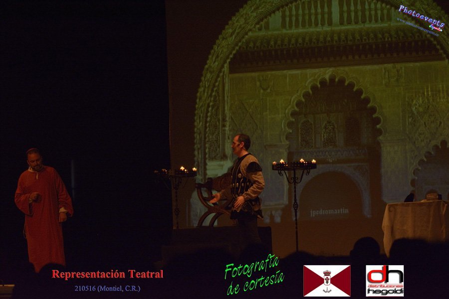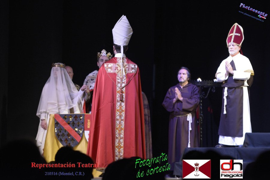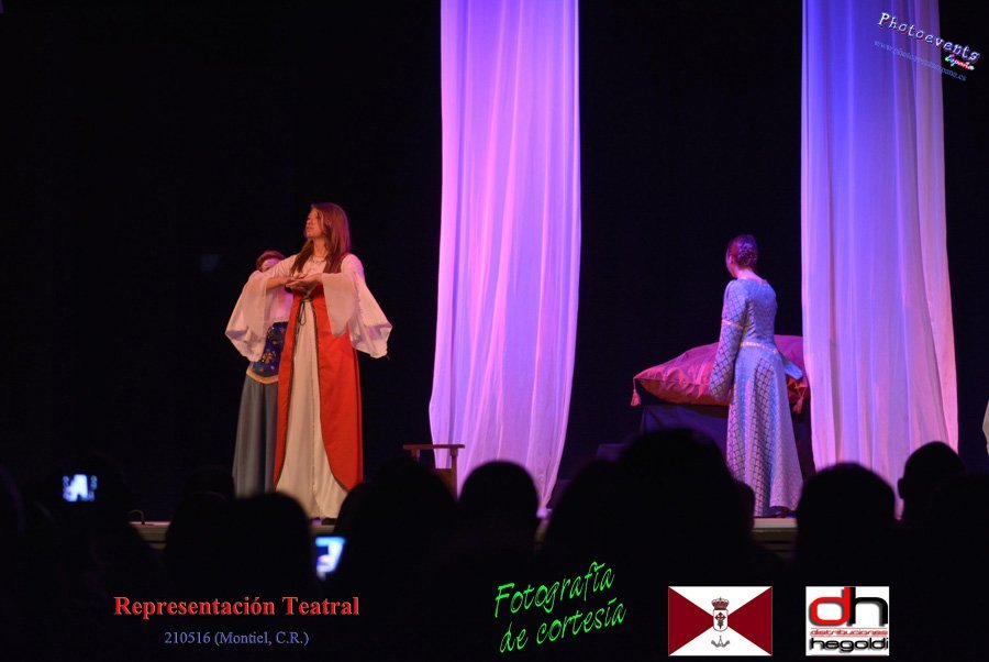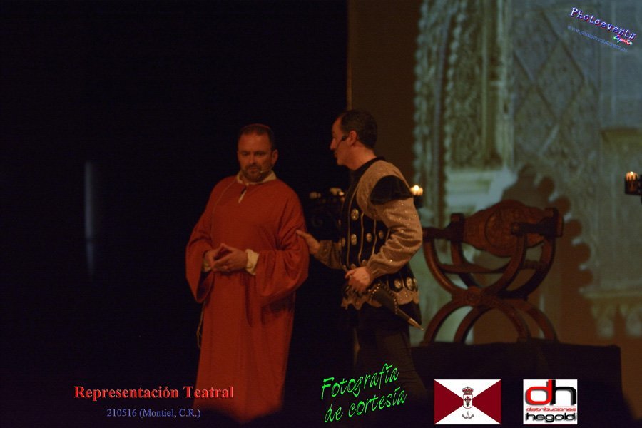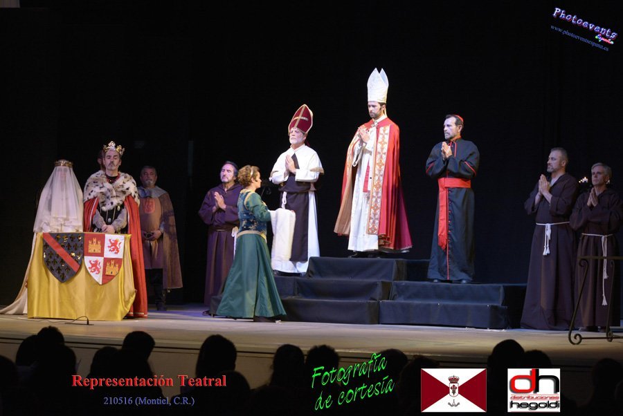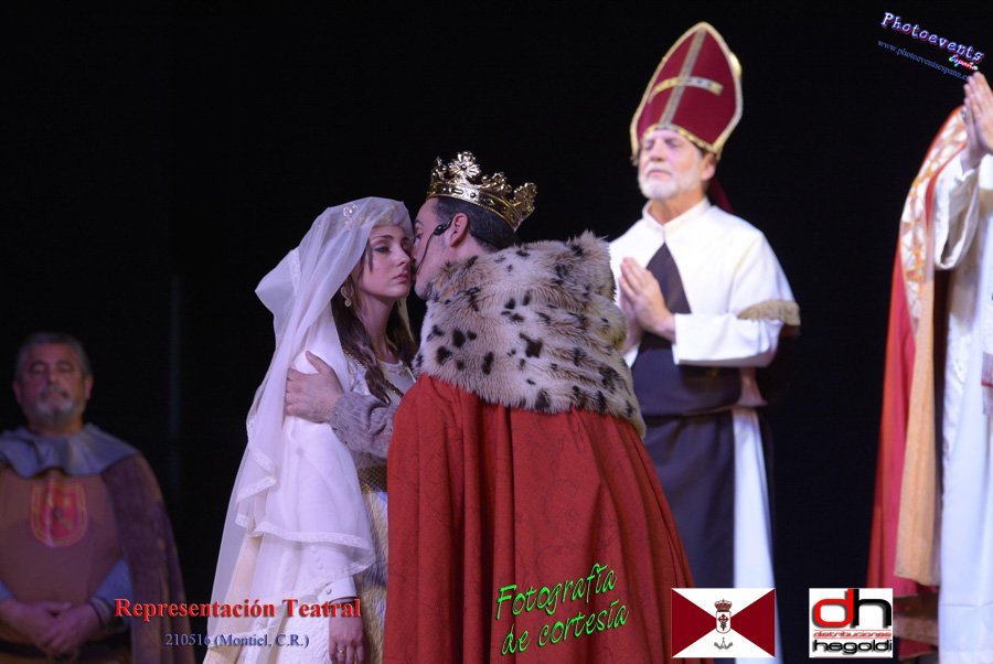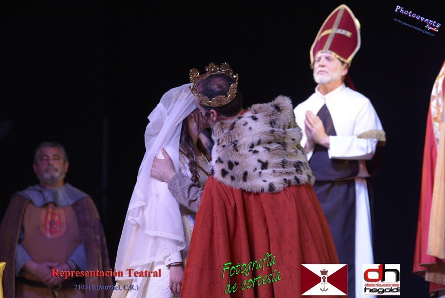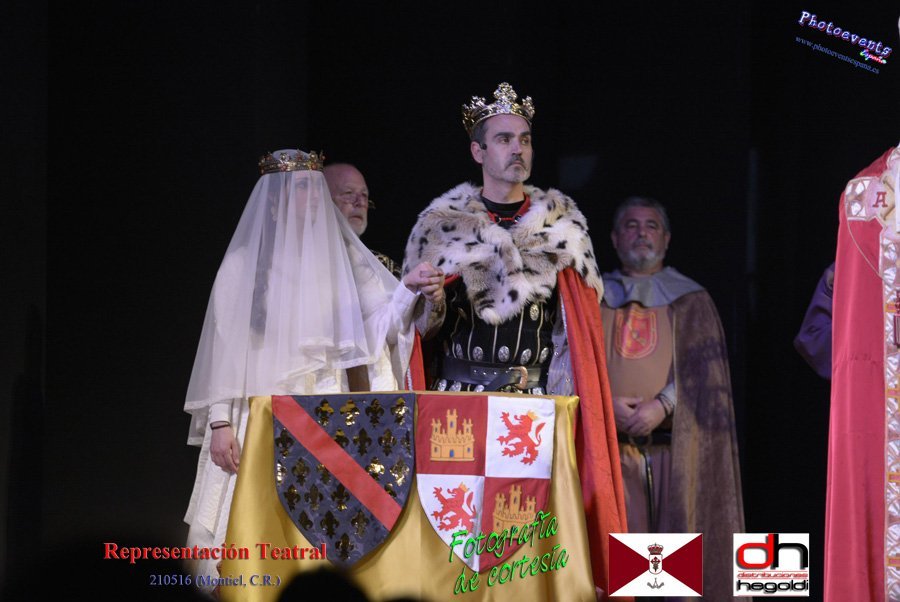 Representación teatral de la obra "La Reina y el Maestre", en el centro Socio Cultural José Mota, durante las XLII Recreación Histórica Medieval durante los días del 20 al 22 de Mayo, en la localidad de Montiel, Ciudad Real, España.