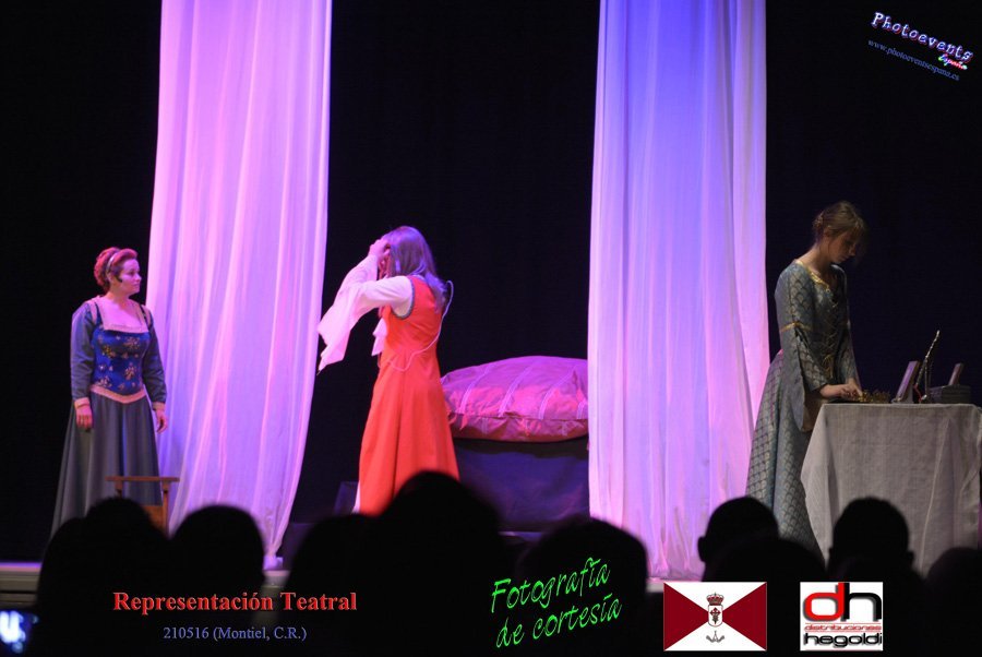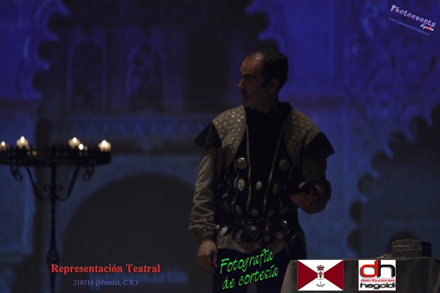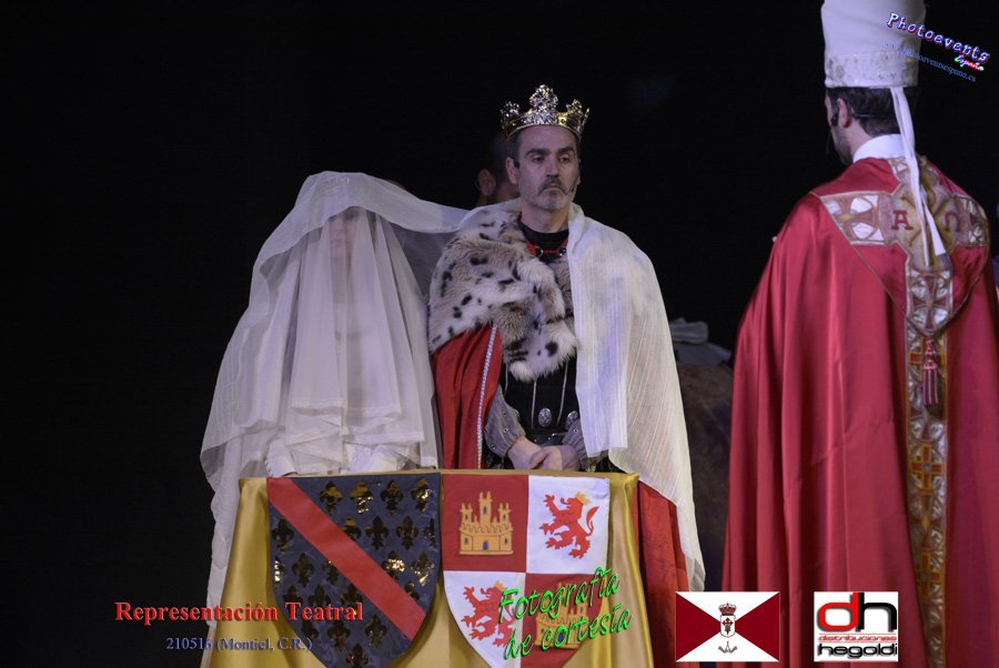 Representación teatral de la obra "La Reina y el Maestre", en el centro Socio Cultural José Mota, durante las XLII Recreación Histórica Medieval durante los días del 20 al 22 de Mayo, en la localidad de Montiel, Ciudad Real, España.