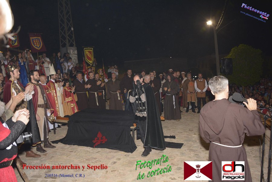 Procesión de las antorchas y Sepelio en honor al Rey Don Pedro I, durante las XLII Recreación Histórica Medieval durante los días del 20 al 22 de Mayo, en la localidad de Montiel, Ciudad Real, España.
