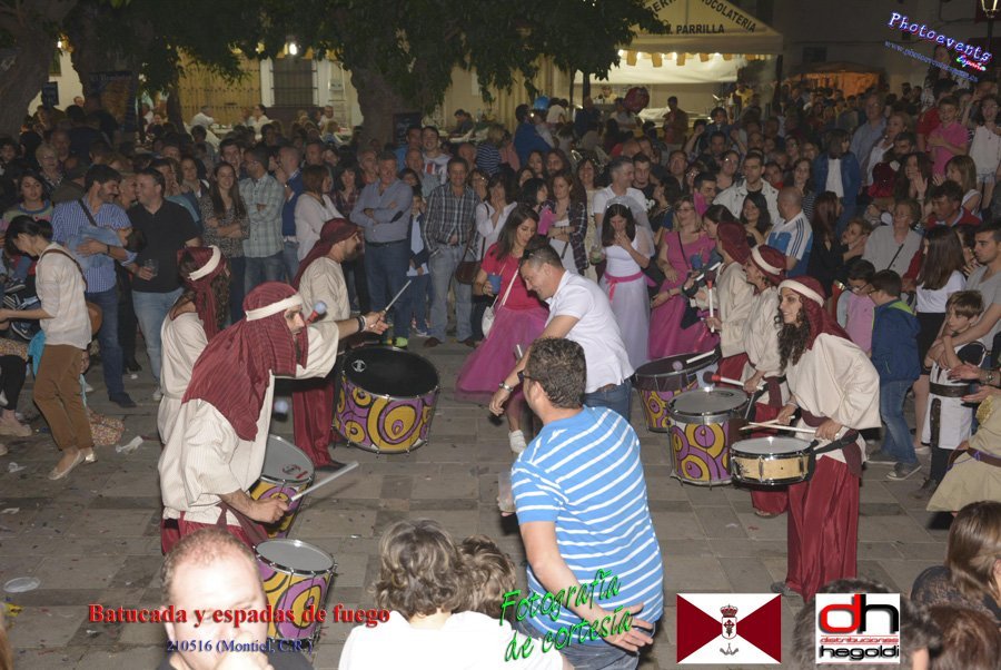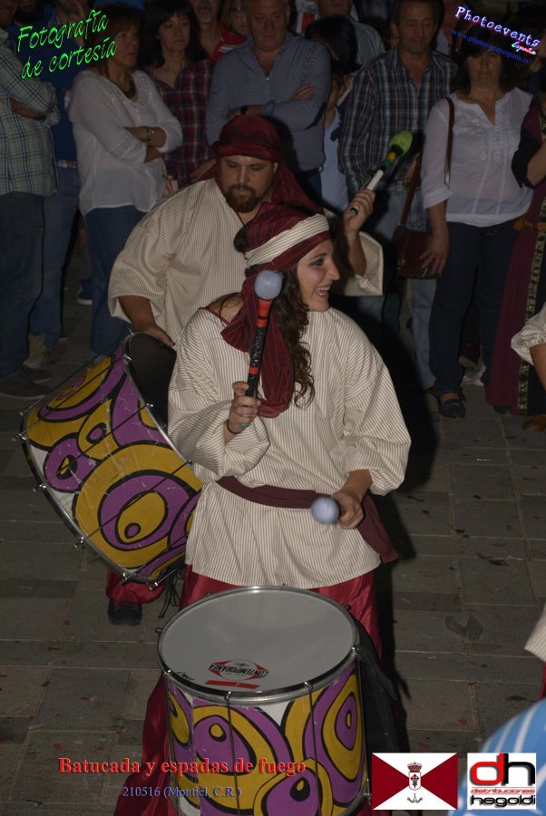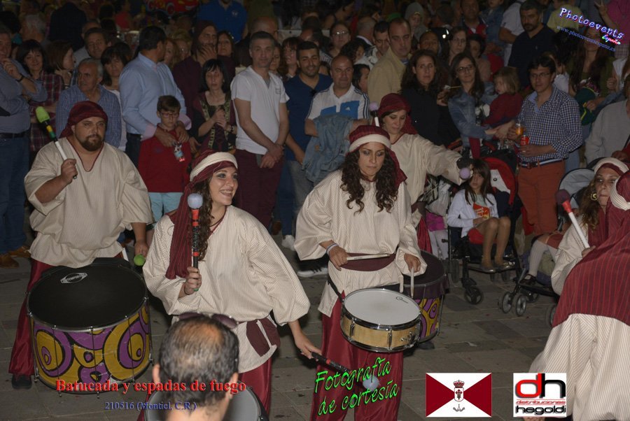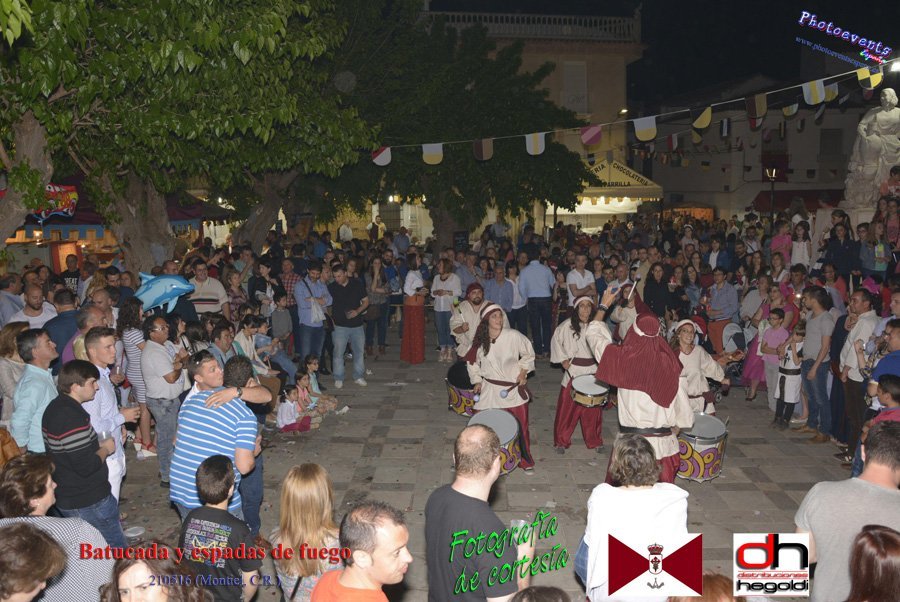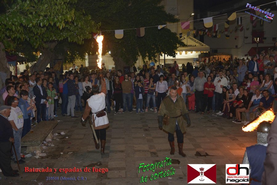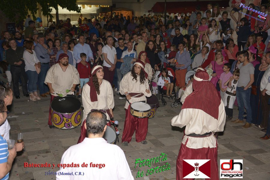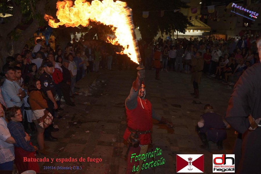 Batucada Medieval y espectáculo de Espadas de Fuego a cargo del grupo de La Corte delle Spade (Italia), durante las XLII Recreación Histórica Medieval durante los días del 20 al 22 de Mayo, en la localidad de Montiel, Ciudad Real, España.
