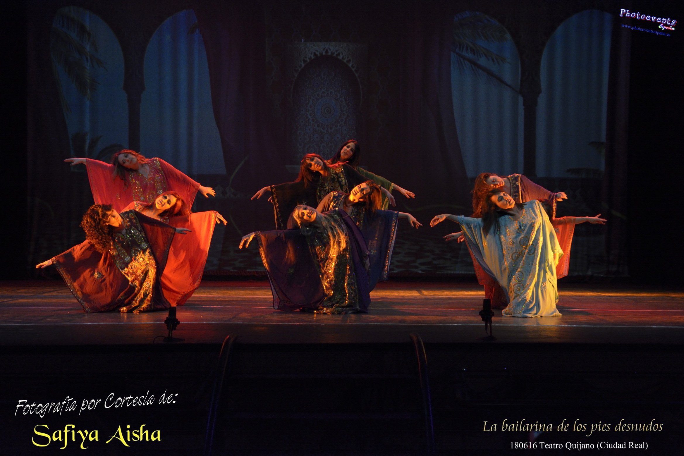 Fotografías del espectáculo "La bailarina de los pies desnudos" , realizado por Safiya Aisha junto con la compañía de danza oriental Saisha Danza, el nuevo grupo amateur y los correspondientes grupos de alumnas de primero y segundo año de curso. El espectáculo tuvo lugar el pasado día 18 de Junio en el teatro Quijano, (Ciudad Real)