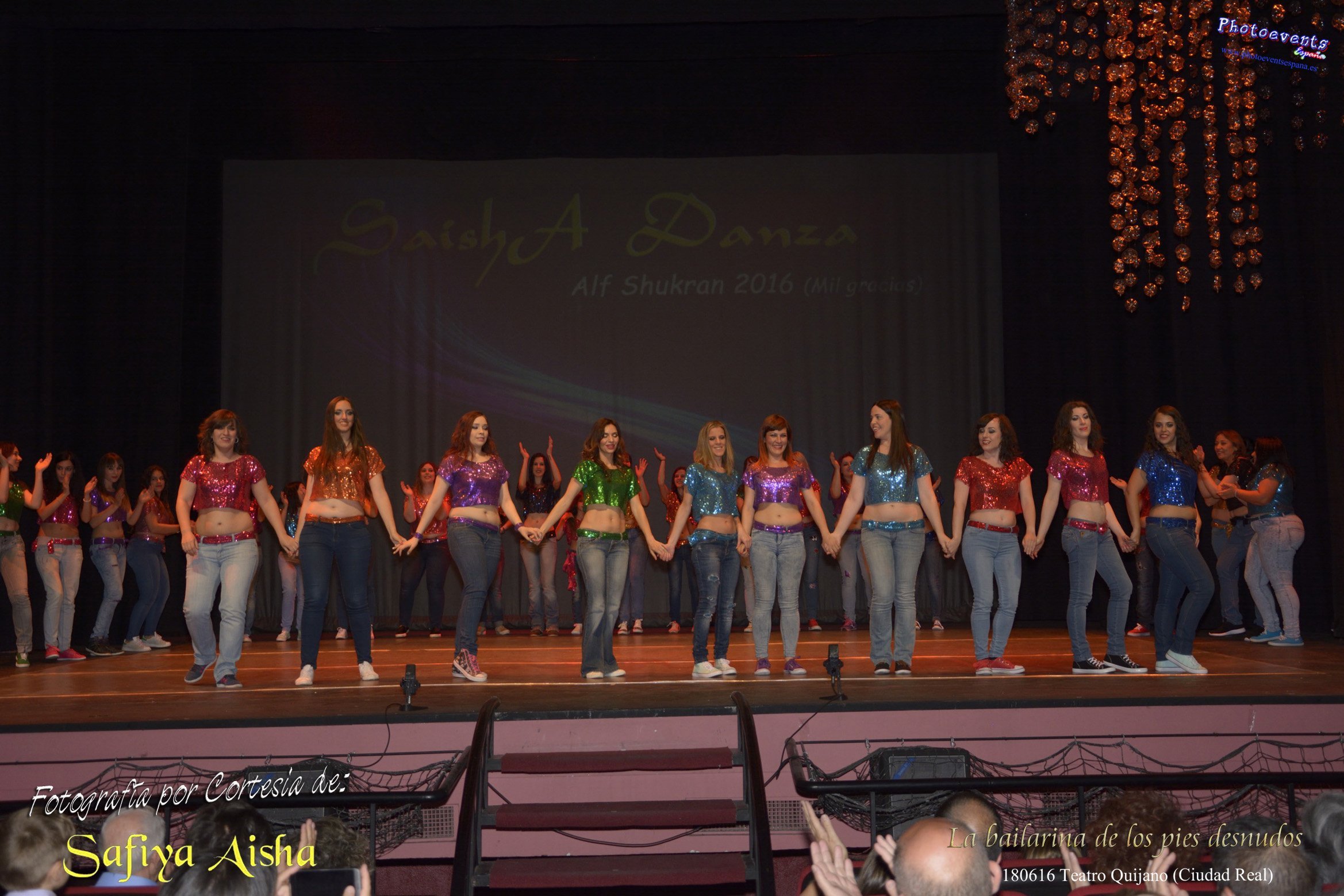 Fotografías del espectáculo "La bailarina de los pies desnudos" , realizado por Safiya Aisha junto con la compañía de danza oriental Saisha Danza, el nuevo grupo amateur y los correspondientes grupos de alumnas de primero y segundo año de curso. El espectáculo tuvo lugar el pasado día 18 de Junio en el teatro Quijano, (Ciudad Real)