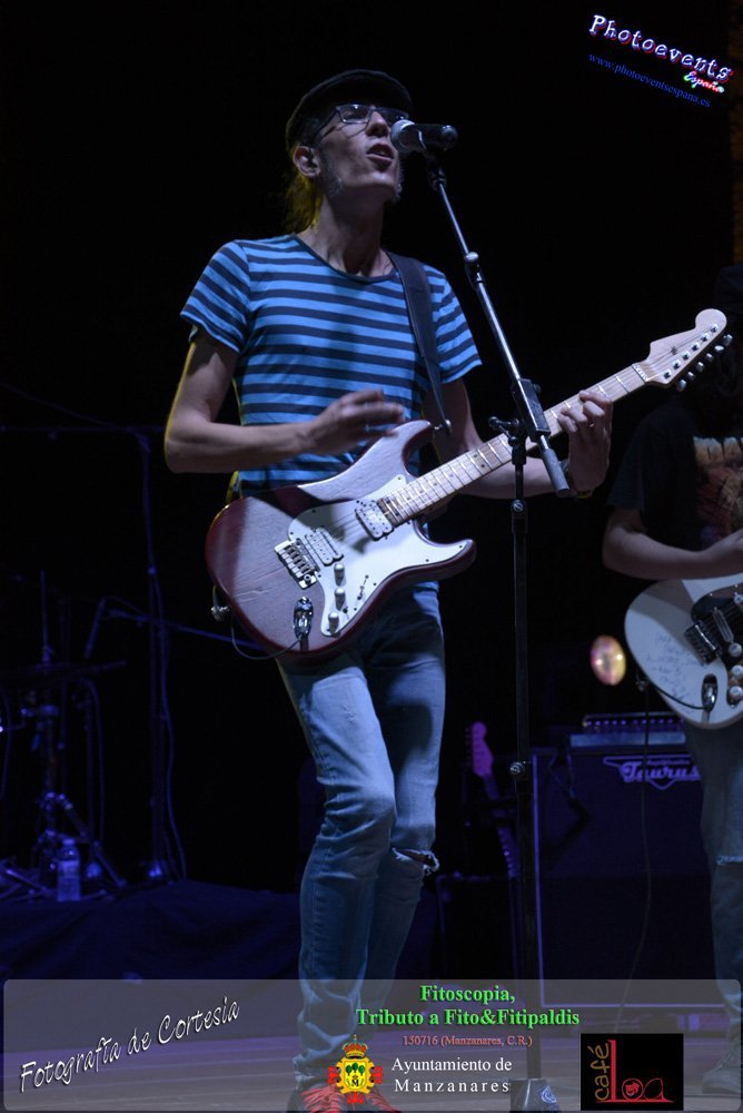 Fotografías realizadas durante el concierto de Fitoscopia, tributo a Fito&Fitipaldis, en la pasada noche del día 15 de Julio durante el viernes de feria en la plazaa de la constitucion de la localidad de Manzanares, Ciudad Real