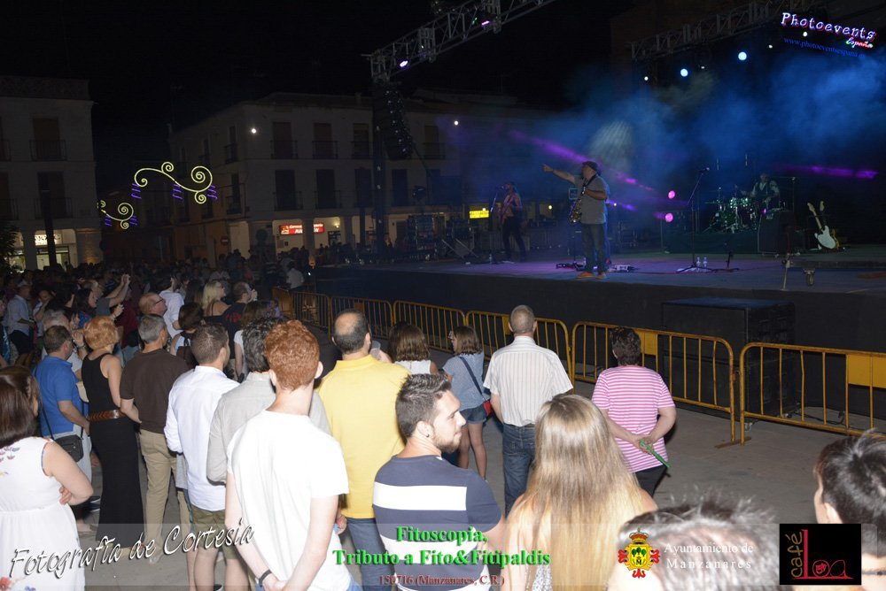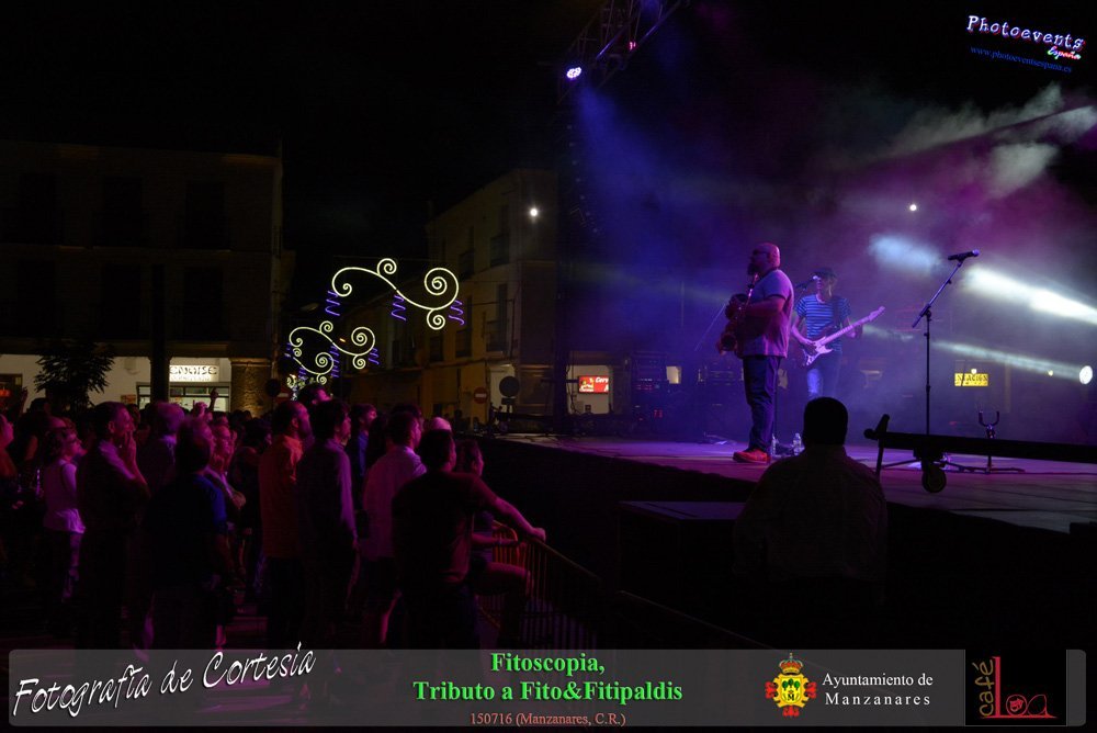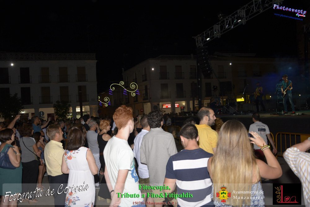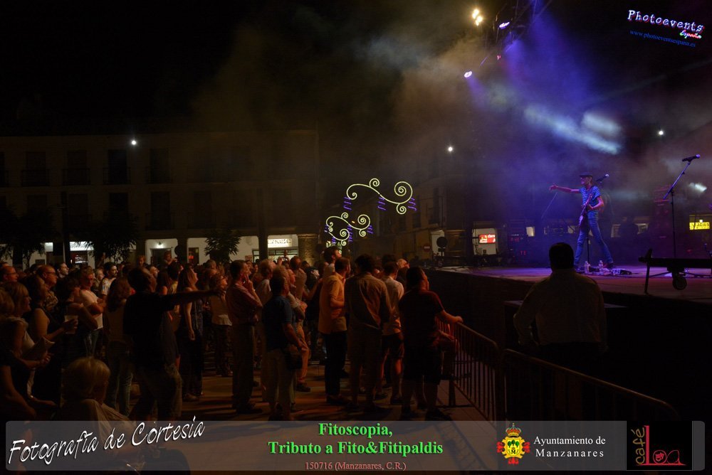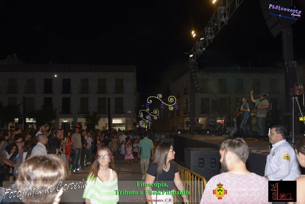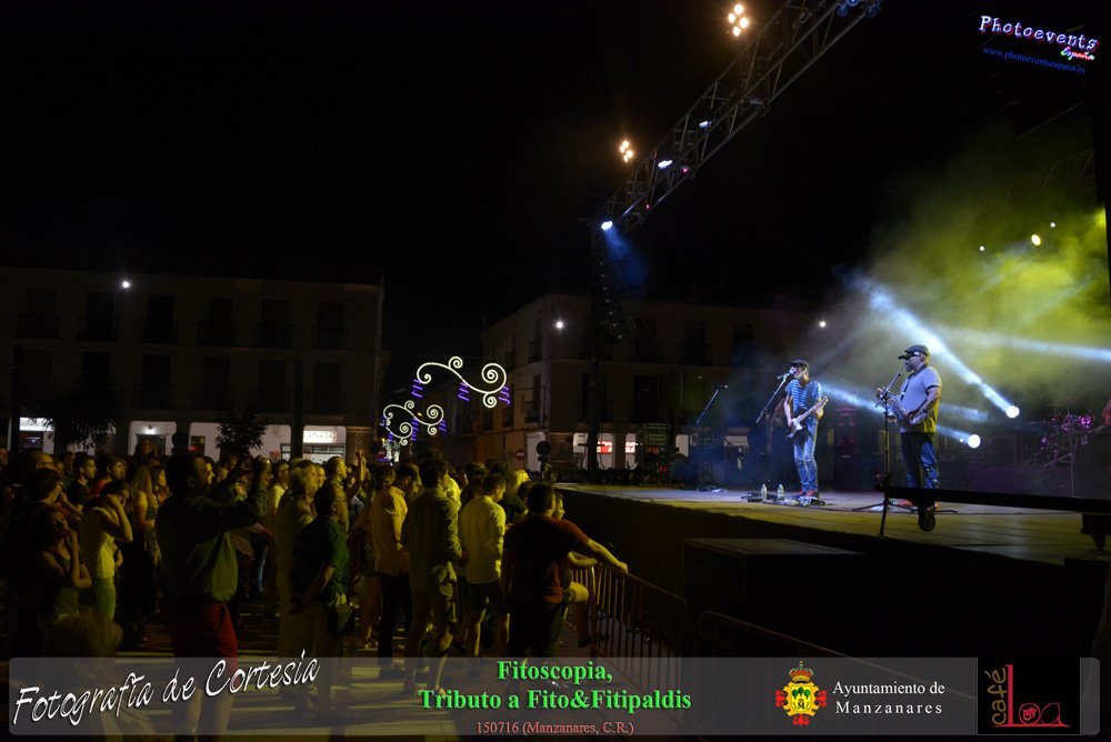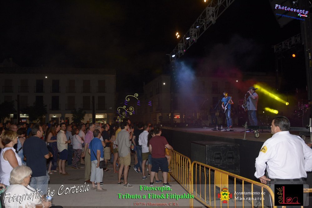 Fotografías realizadas durante el concierto de Fitoscopia, tributo a Fito&Fitipaldis, en la pasada noche del día 15 de Julio durante el viernes de feria en la plazaa de la constitucion de la localidad de Manzanares, Ciudad Real