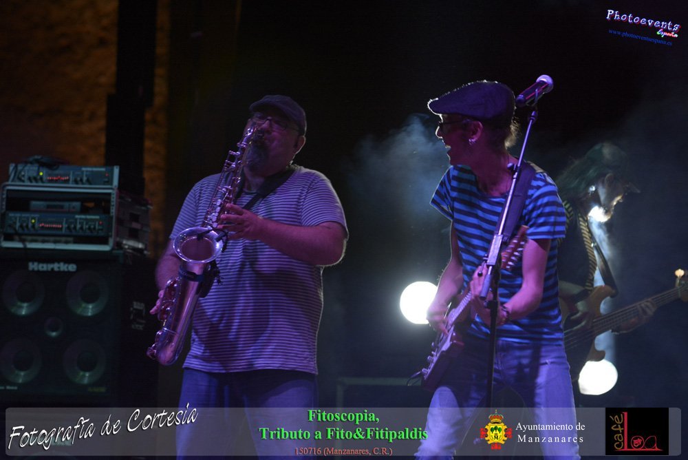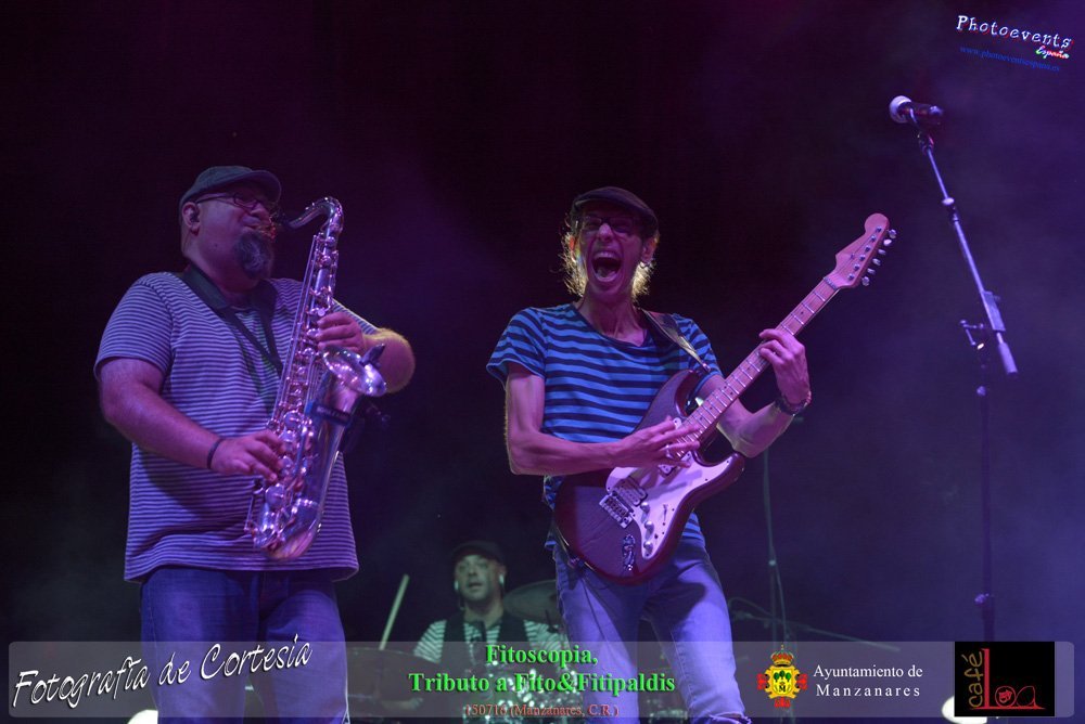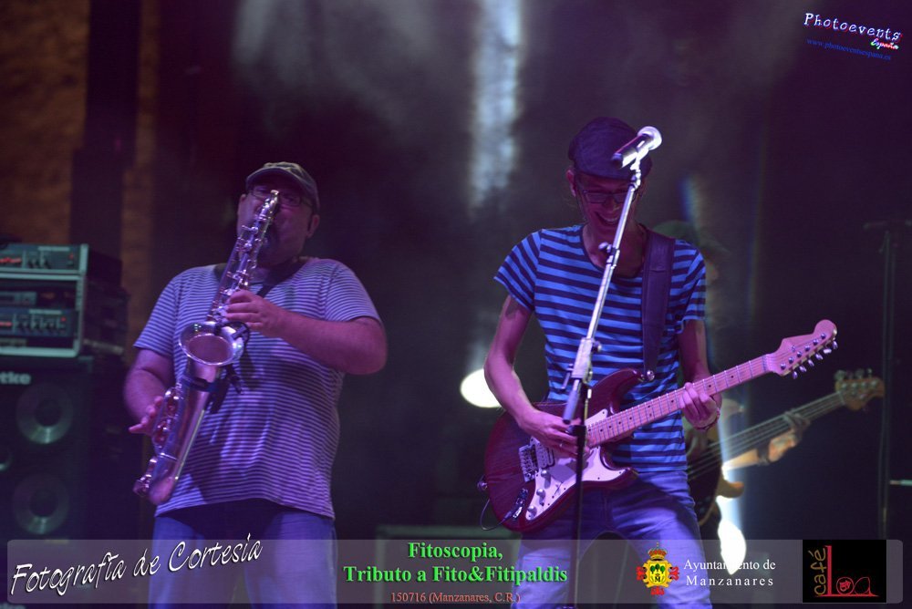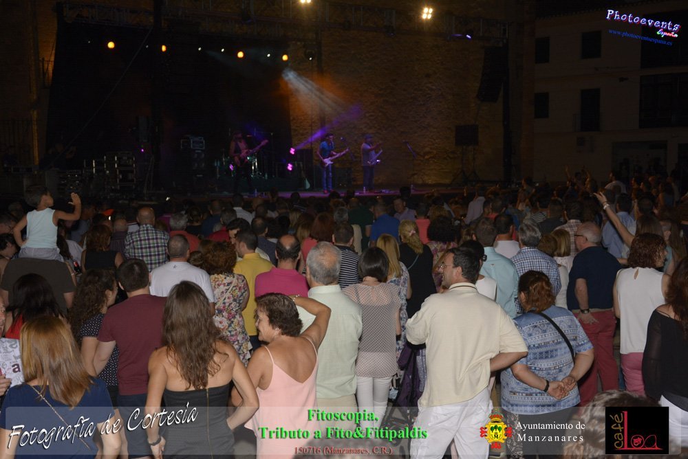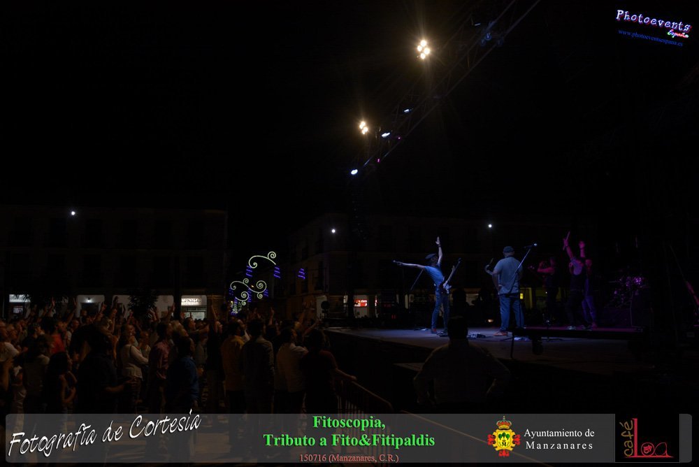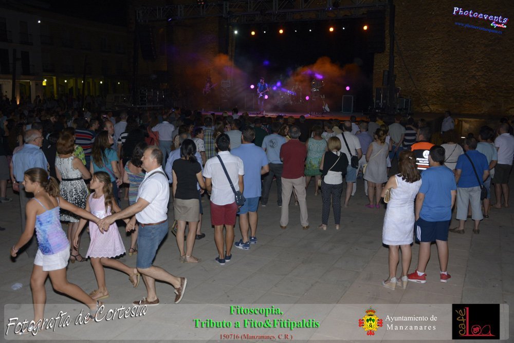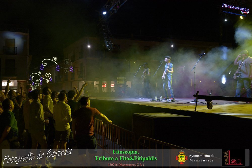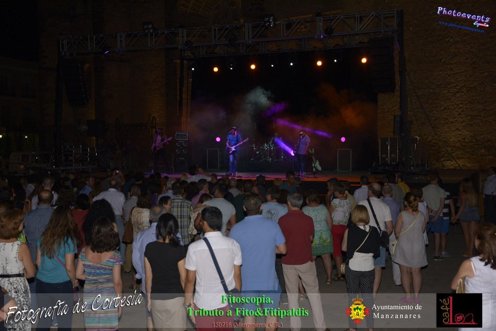 Fotografías realizadas durante el concierto de Fitoscopia, tributo a Fito&Fitipaldis, en la pasada noche del día 15 de Julio durante el viernes de feria en la plazaa de la constitucion de la localidad de Manzanares, Ciudad Real