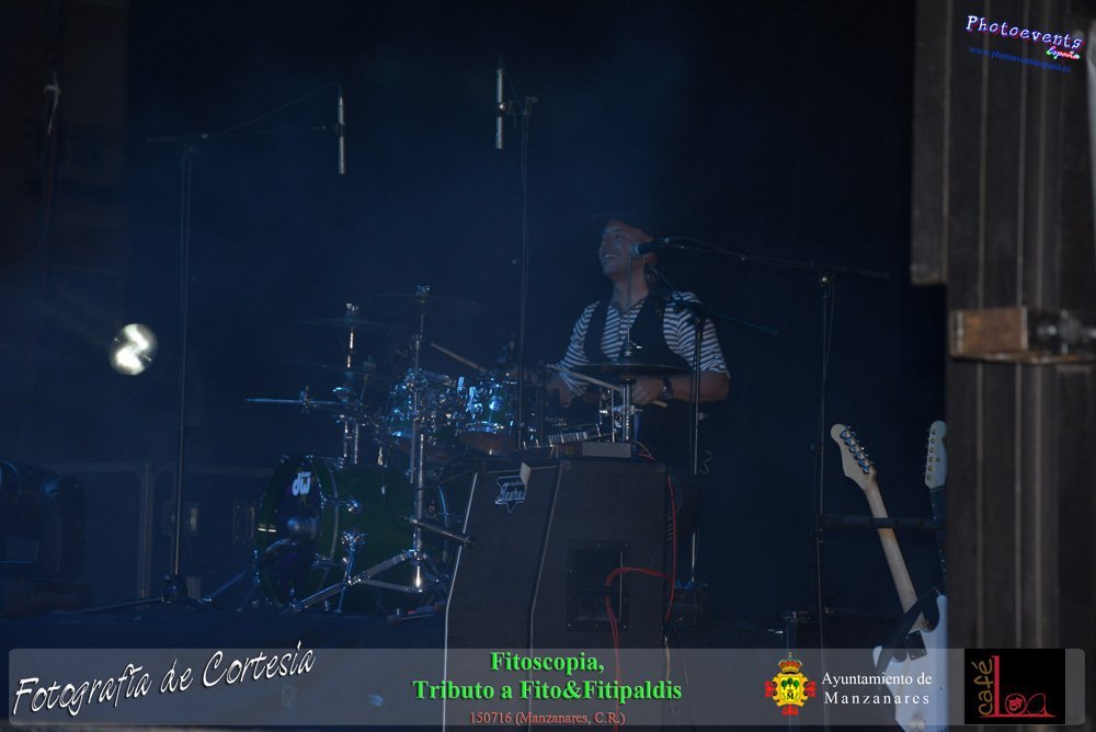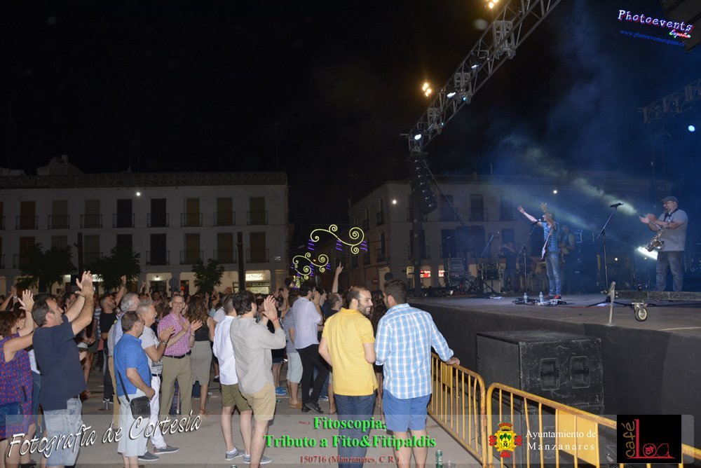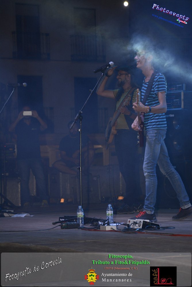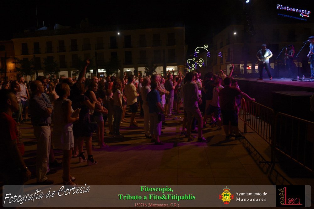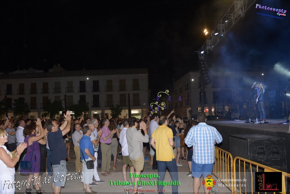 Fotografías realizadas durante el concierto de Fitoscopia, tributo a Fito&Fitipaldis, en la pasada noche del día 15 de Julio durante el viernes de feria en la plazaa de la constitucion de la localidad de Manzanares, Ciudad Real