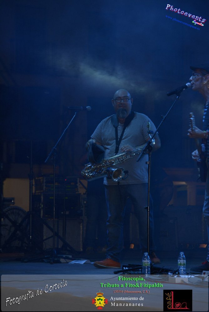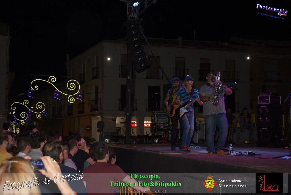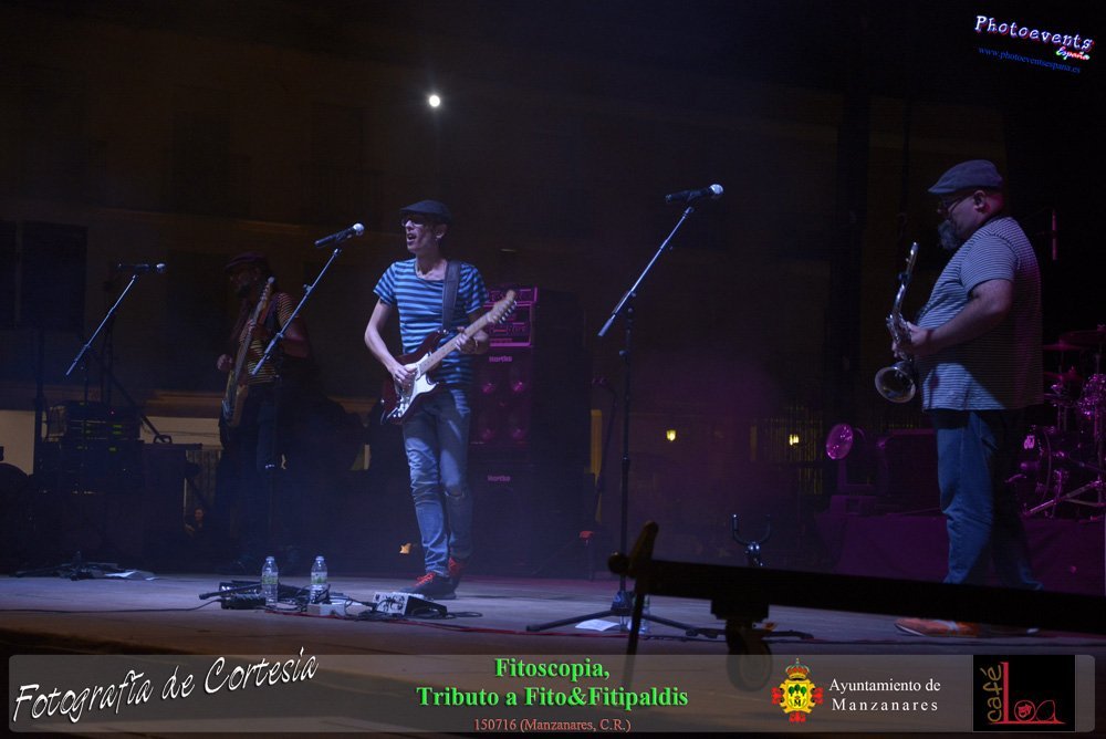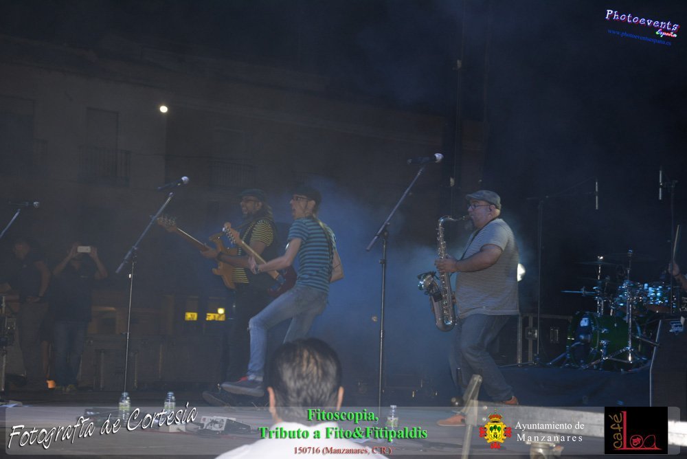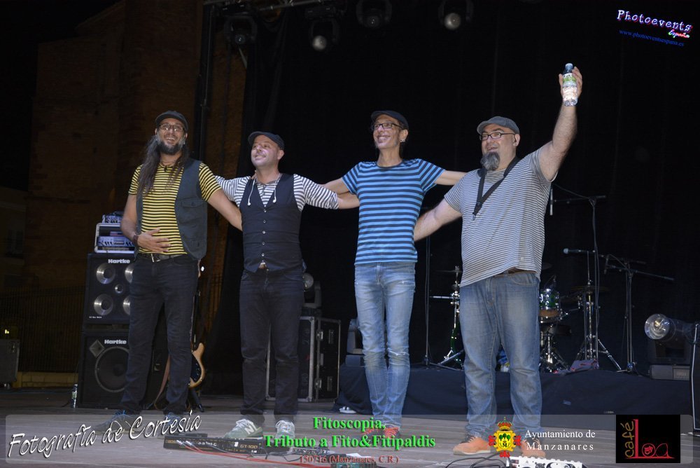 Fotografías realizadas durante el concierto de Fitoscopia, tributo a Fito&Fitipaldis, en la pasada noche del día 15 de Julio durante el viernes de feria en la plazaa de la constitucion de la localidad de Manzanares, Ciudad Real