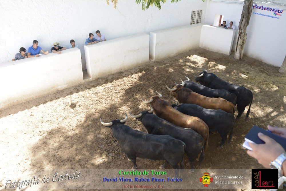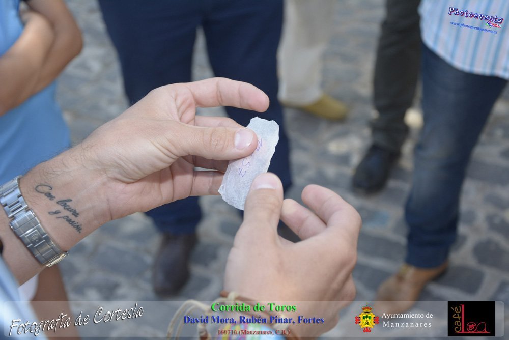 Fotografías realizadas durante el sorteo de lotes y corrida de Toros para los diestros David Mora, Rubén Pinar y Fortes, el pasado día 160716 durante la Feria y Fiestas en la localidad de Manzanares, Ciudad Real