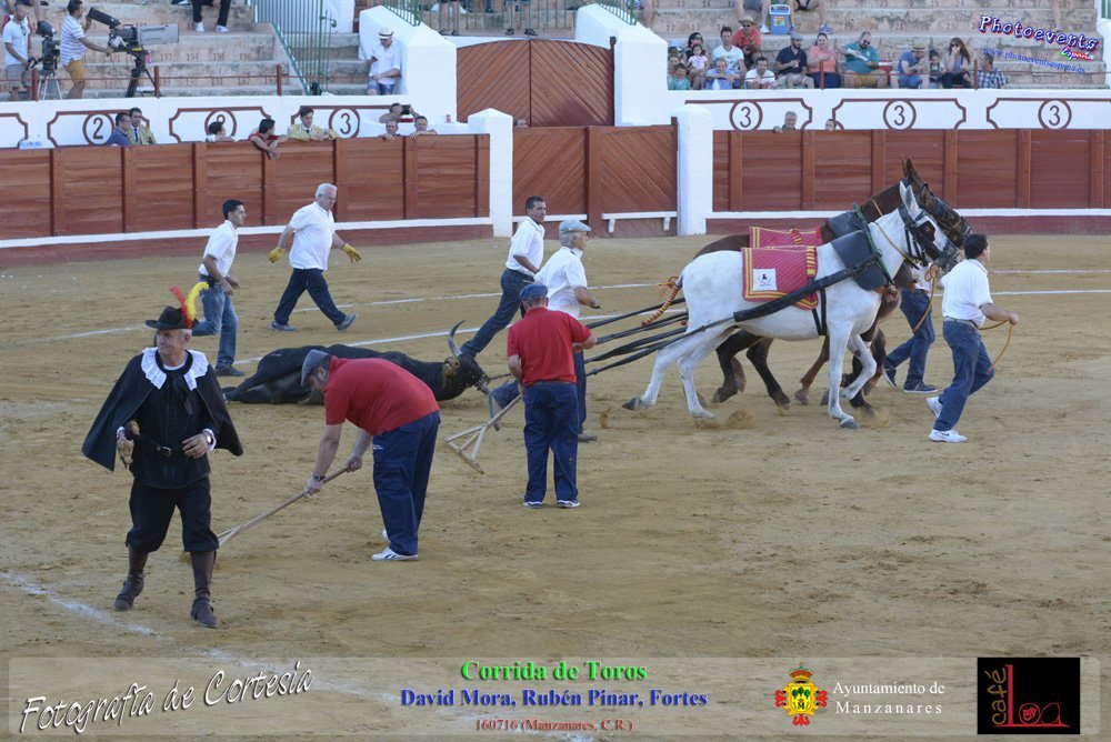 Fotografías realizadas durante el sorteo de lotes y corrida de Toros para los diestros David Mora, Rubén Pinar y Fortes, el pasado día 160716 durante la Feria y Fiestas en la localidad de Manzanares, Ciudad Real