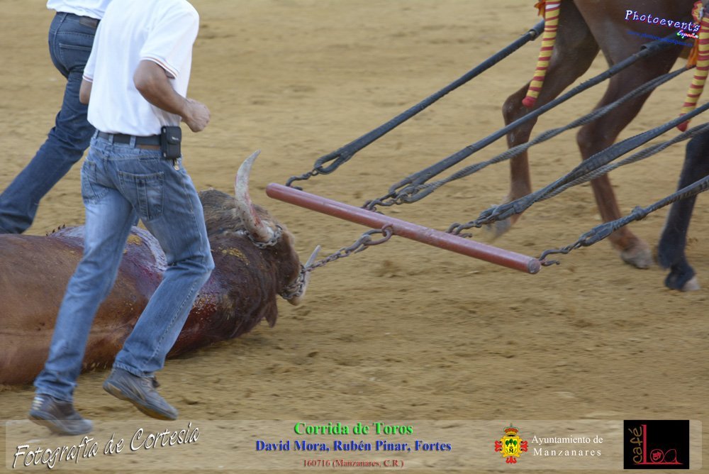 Fotografías realizadas durante el sorteo de lotes y corrida de Toros para los diestros David Mora, Rubén Pinar y Fortes, el pasado día 160716 durante la Feria y Fiestas en la localidad de Manzanares, Ciudad Real
