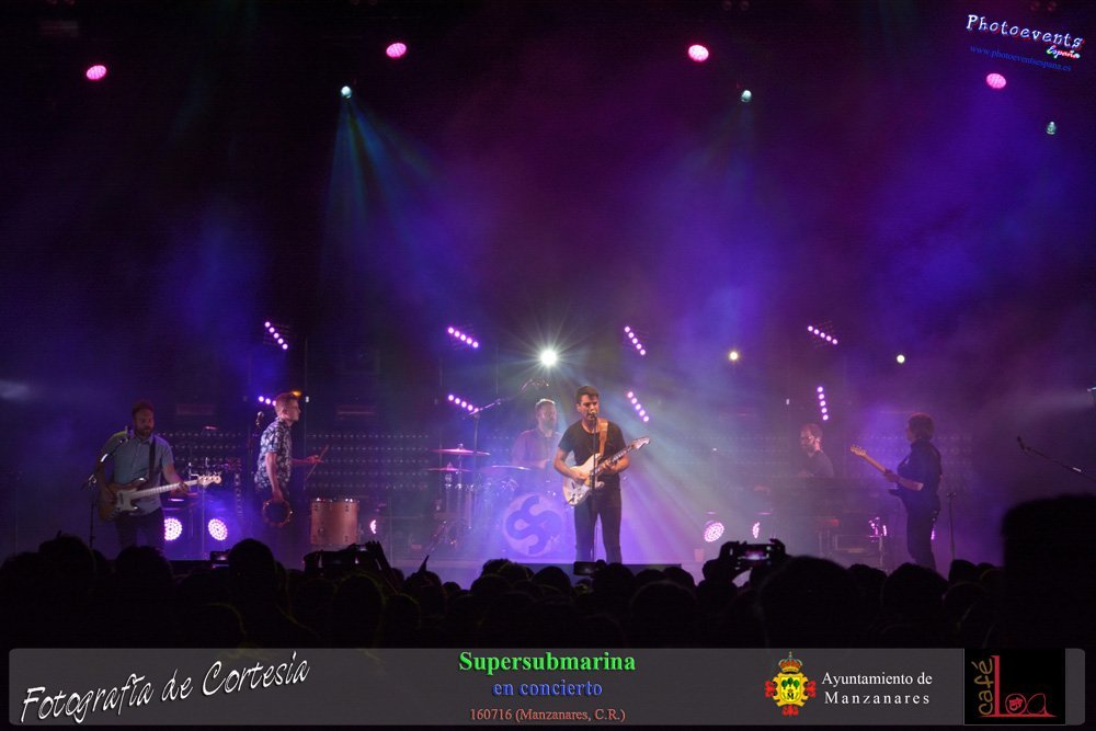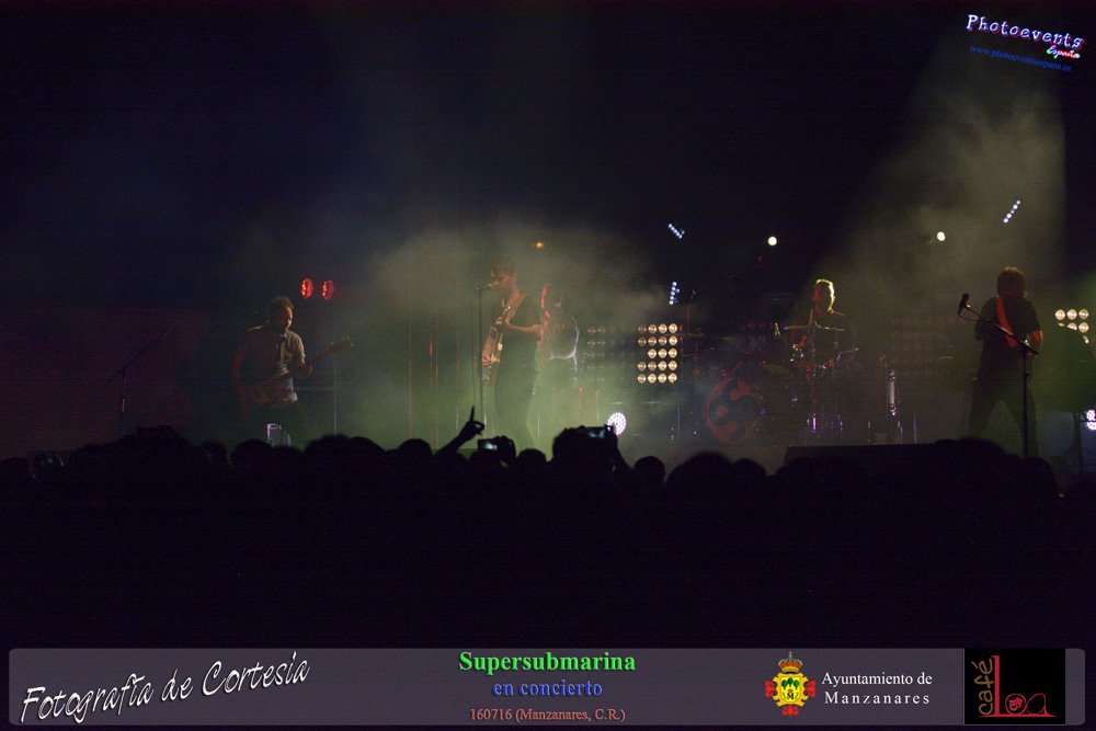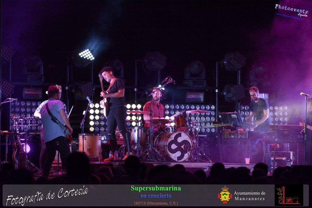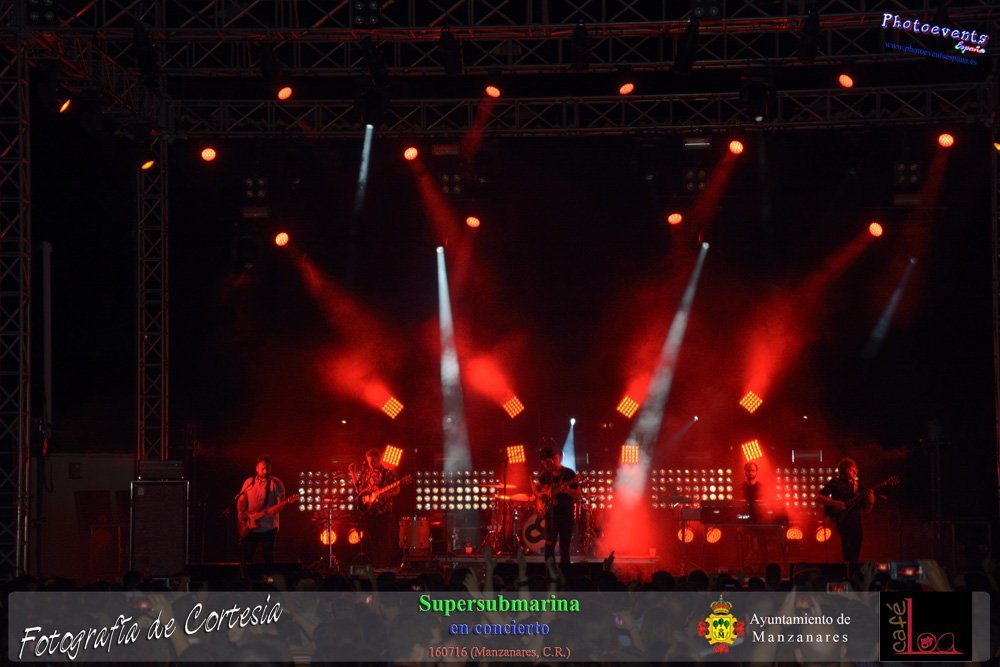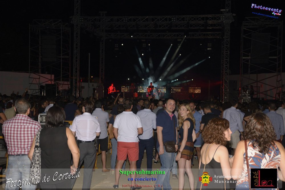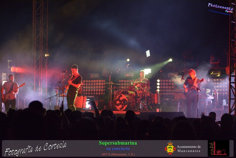 Fotografías realizadas durante el concierto de Supersubmarina, congregando a más de 1500 personas llegadas desde distintos sitios como Tomelloso, Daimiel , Castellar de Santiago y muchos sitios más, el concierto tuvo lugar la pasada noche del día 16 de Julio durante la Feria y Fiestas en la localidad de Manzanares, Ciudad Real