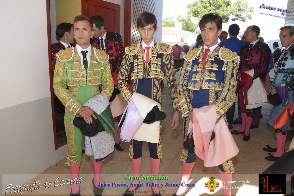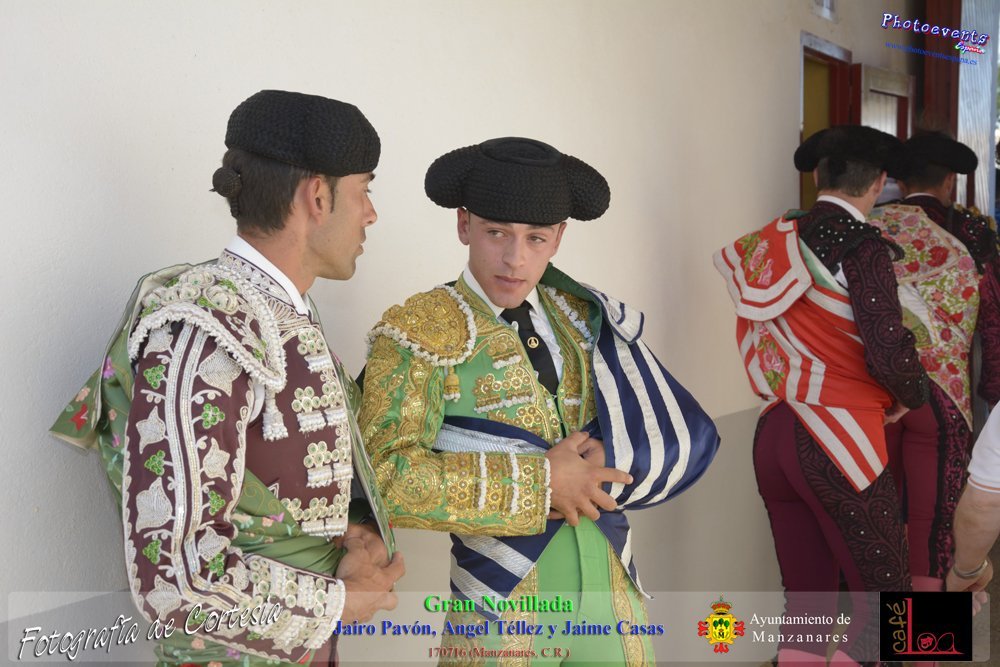 Fotografías realizadas durante la novillada que tuvo lugar en la plaza de Toros de Manzanares , con motivo de la Feria y Fiestas, para los novilleros Jairo Pavón , Ángel Tellez y Jaime Casas. Lidiando 6 novillos de las ganaderías Fernando Peña y el Jaral de la Mira. El evento tuvo lugar el pasado día 170716 en la localidad de Manzanares, Ciudad Real