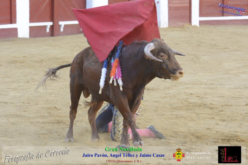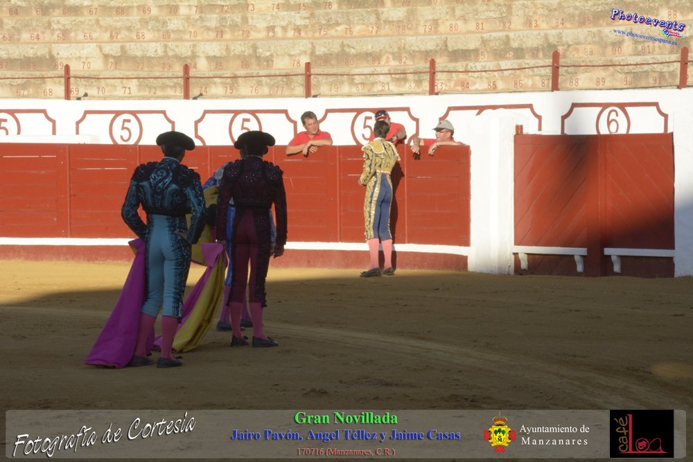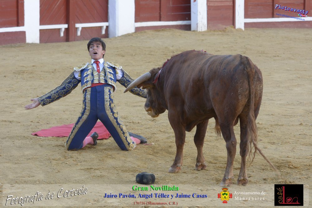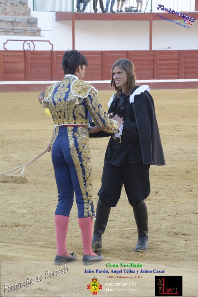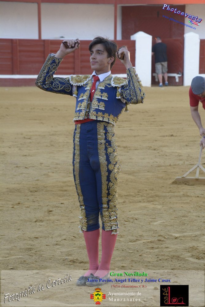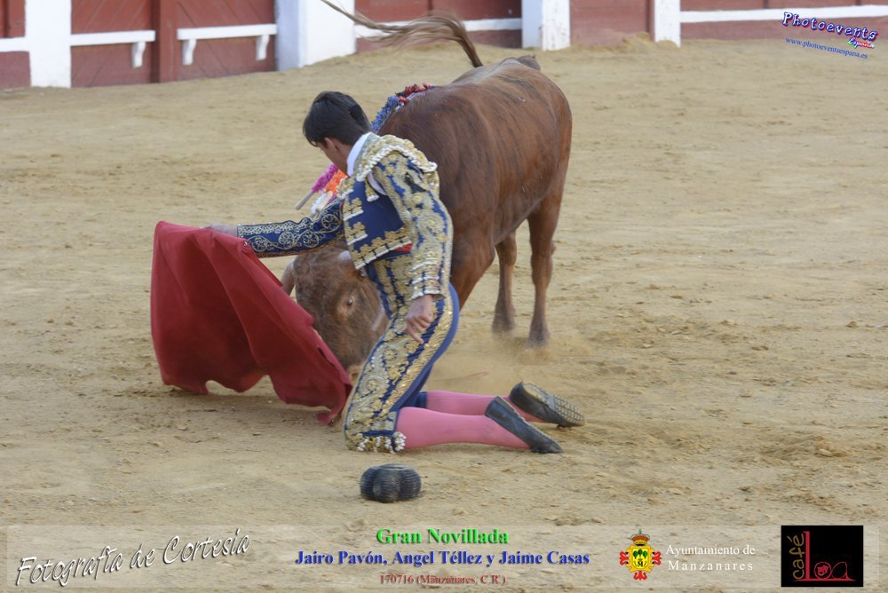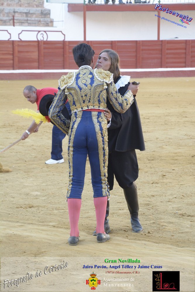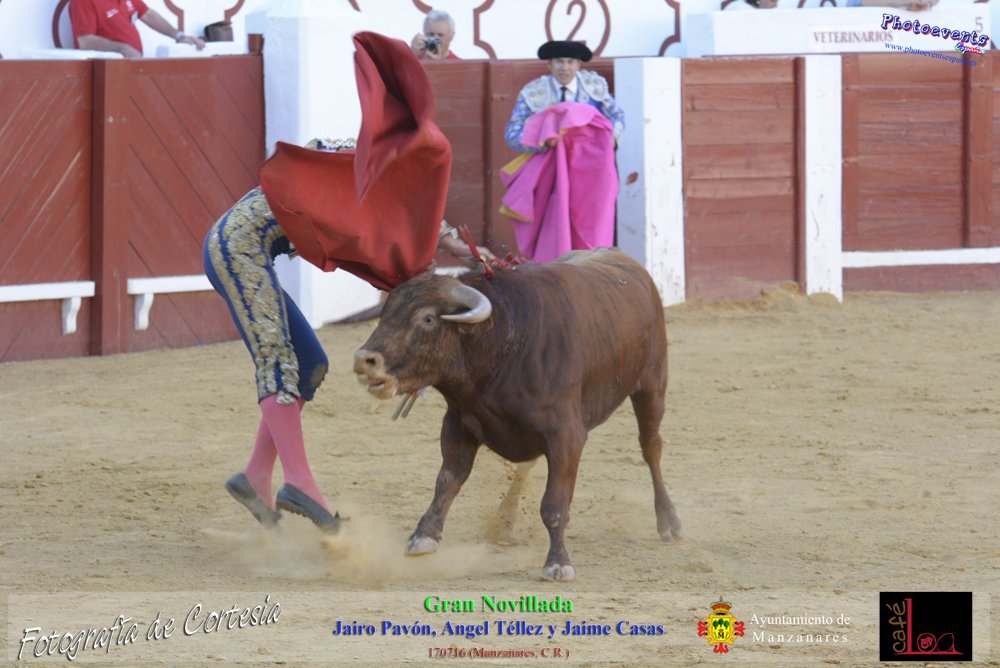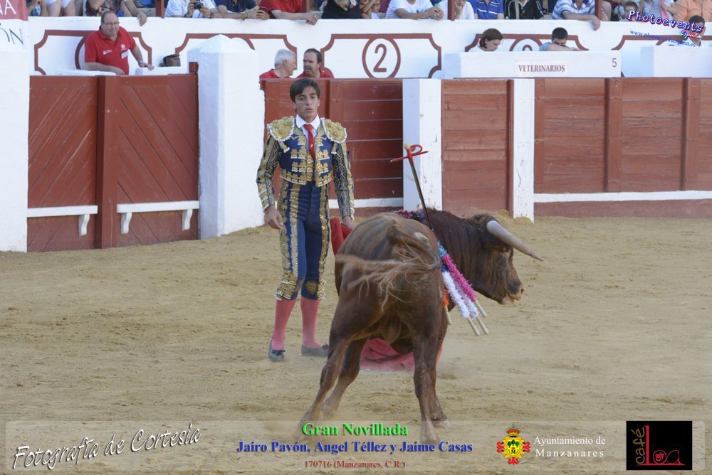 Fotografías realizadas durante la novillada que tuvo lugar en la plaza de Toros de Manzanares , con motivo de la Feria y Fiestas, para los novilleros Jairo Pavón , Ángel Tellez y Jaime Casas. Lidiando 6 novillos de las ganaderías Fernando Peña y el Jaral de la Mira. El evento tuvo lugar el pasado día 170716 en la localidad de Manzanares, Ciudad Real
