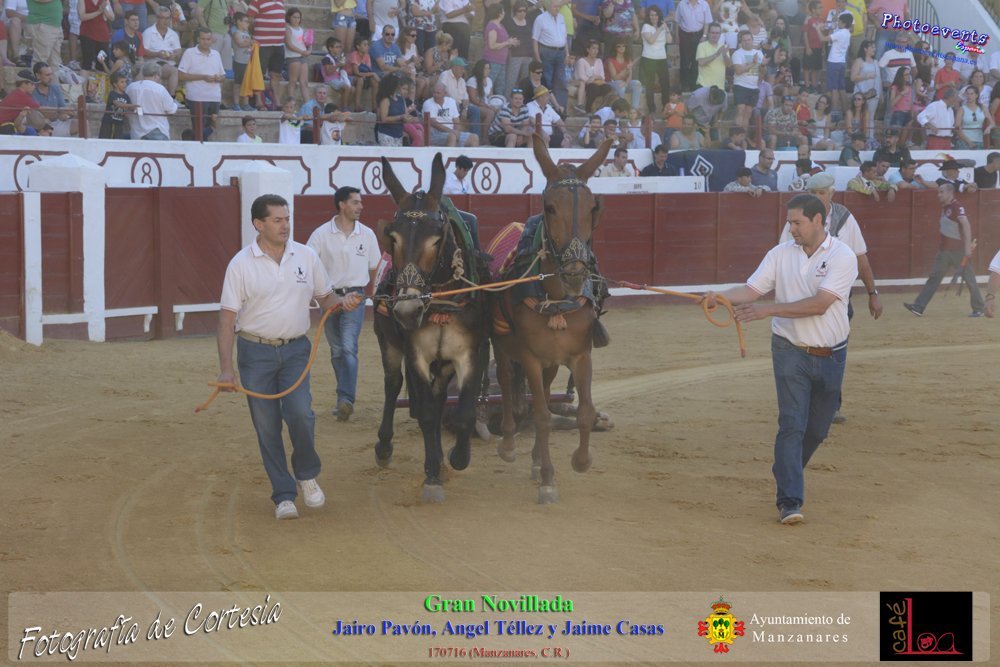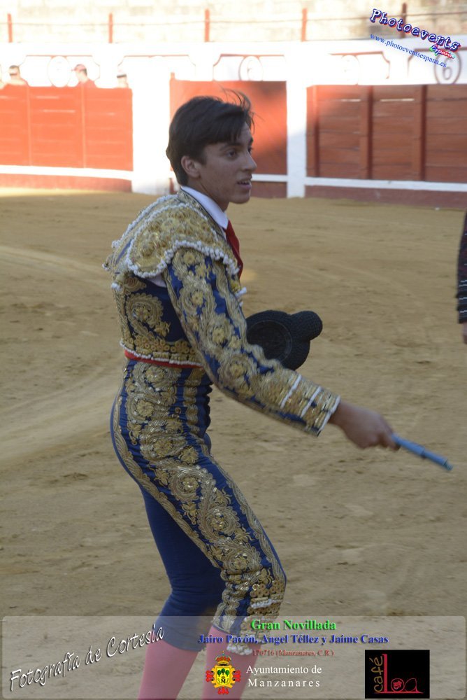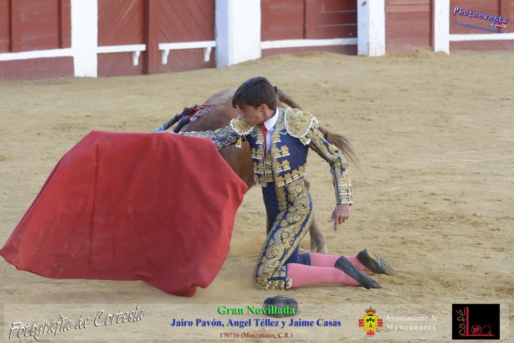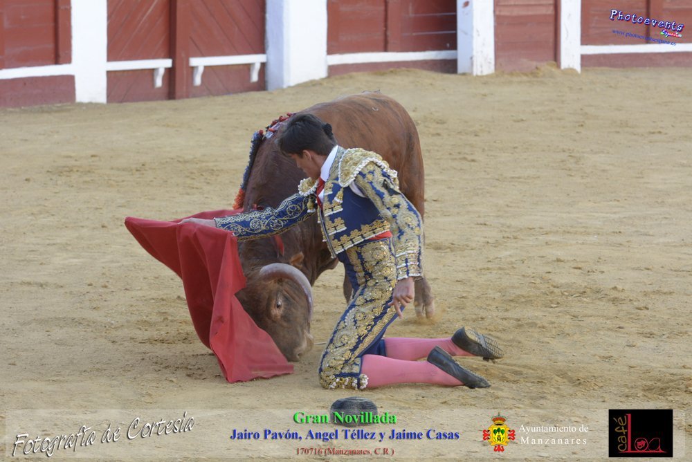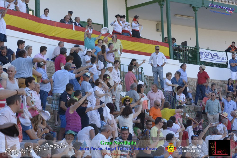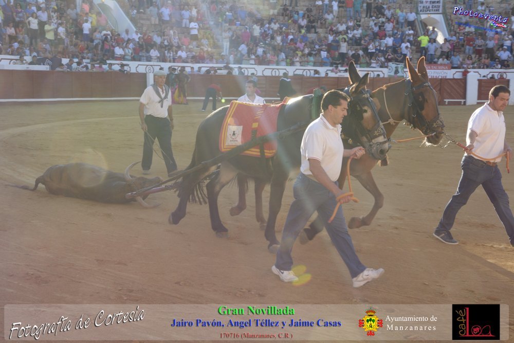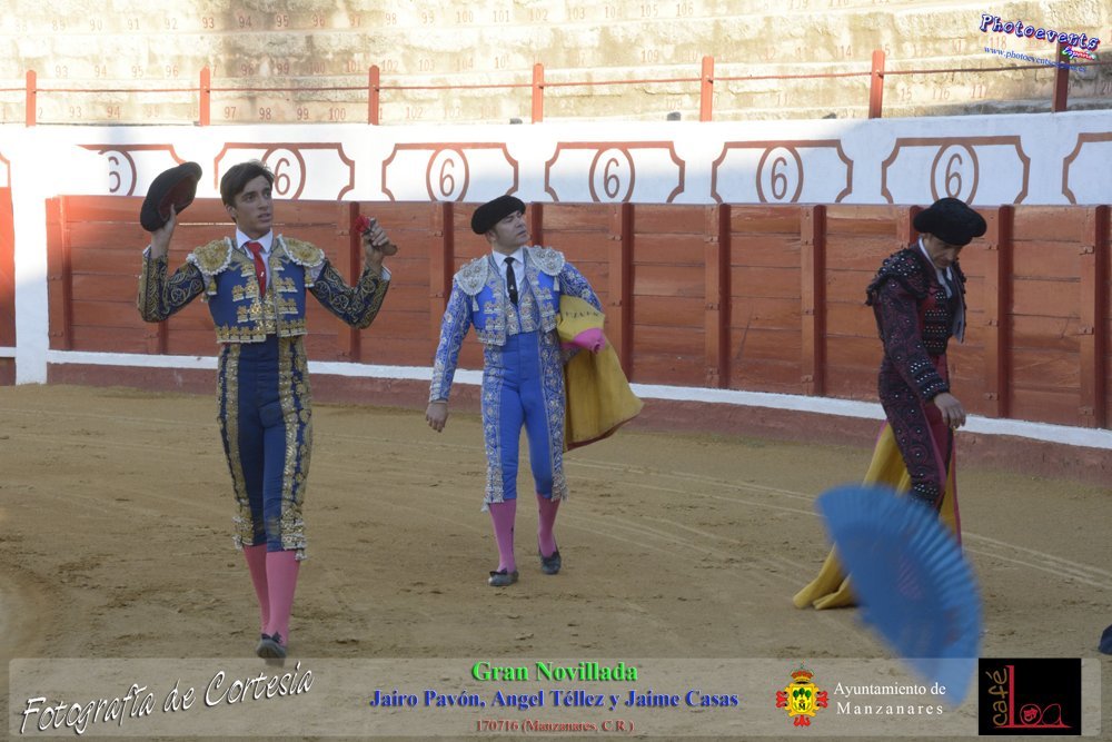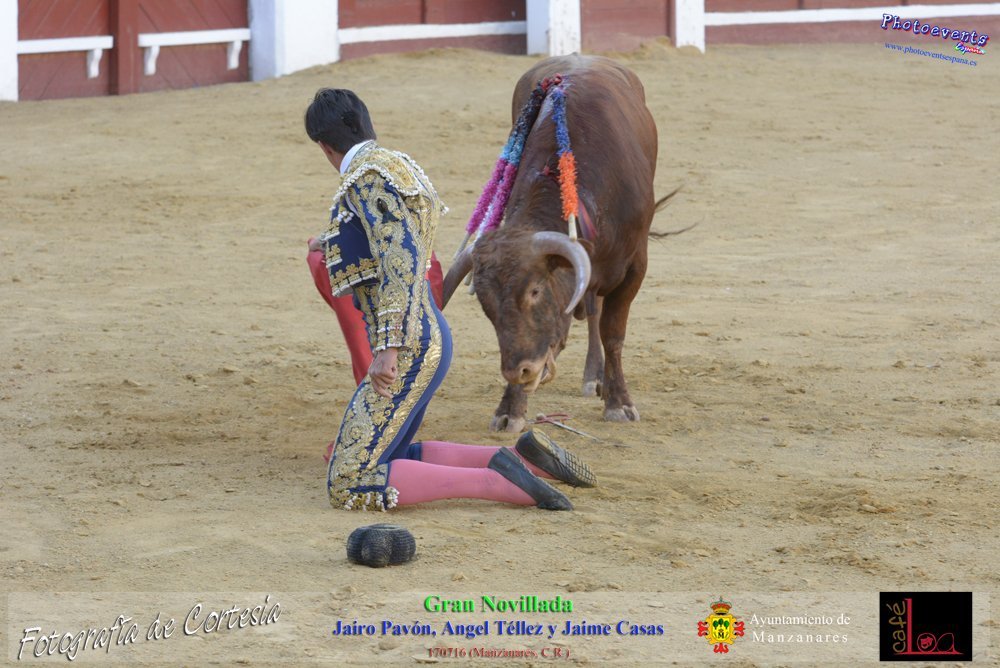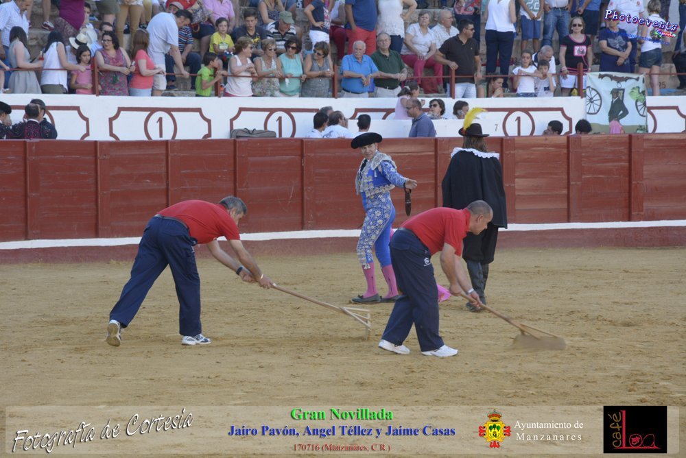 Fotografías realizadas durante la novillada que tuvo lugar en la plaza de Toros de Manzanares , con motivo de la Feria y Fiestas, para los novilleros Jairo Pavón , Ángel Tellez y Jaime Casas. Lidiando 6 novillos de las ganaderías Fernando Peña y el Jaral de la Mira. El evento tuvo lugar el pasado día 170716 en la localidad de Manzanares, Ciudad Real
