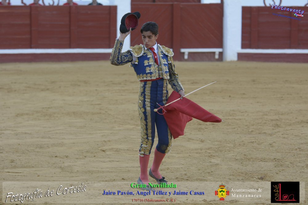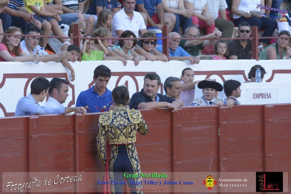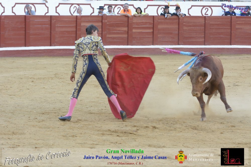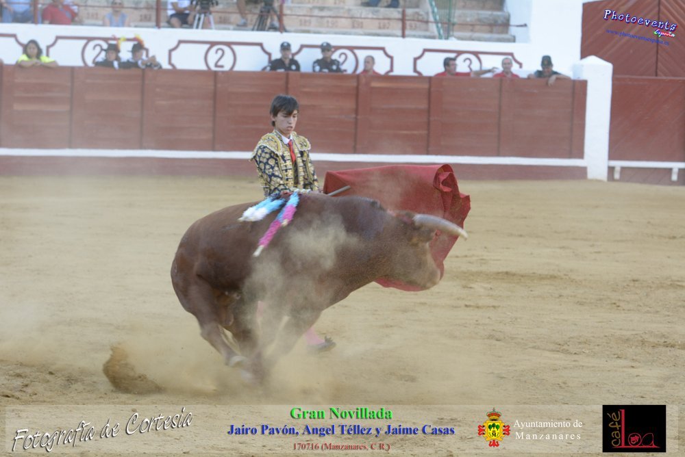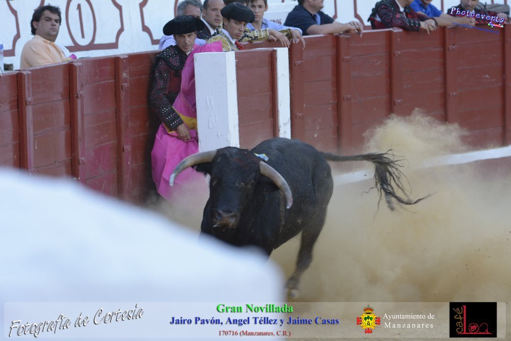 Fotografías realizadas durante la novillada que tuvo lugar en la plaza de Toros de Manzanares , con motivo de la Feria y Fiestas, para los novilleros Jairo Pavón , Ángel Tellez y Jaime Casas. Lidiando 6 novillos de las ganaderías Fernando Peña y el Jaral de la Mira. El evento tuvo lugar el pasado día 170716 en la localidad de Manzanares, Ciudad Real