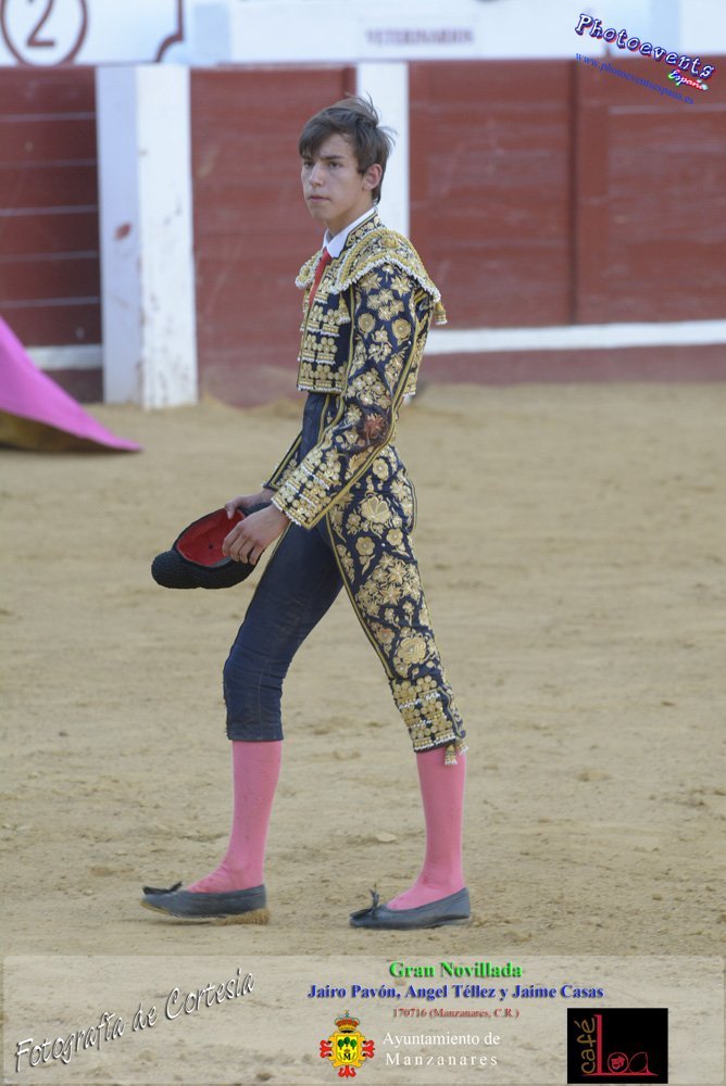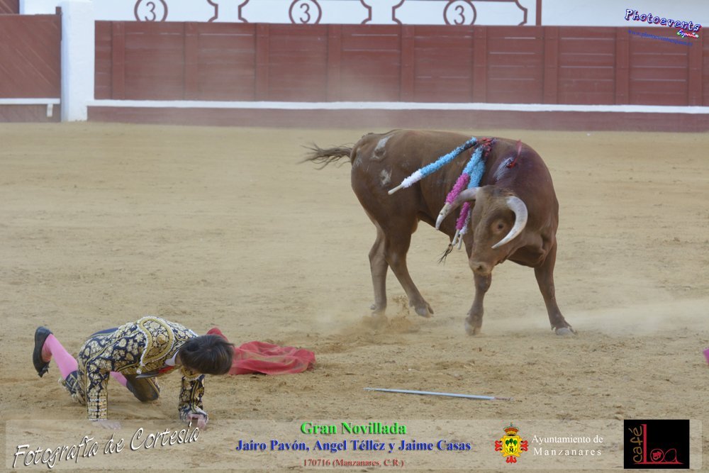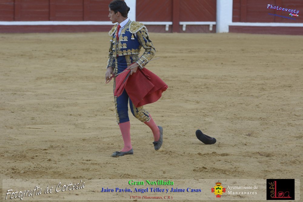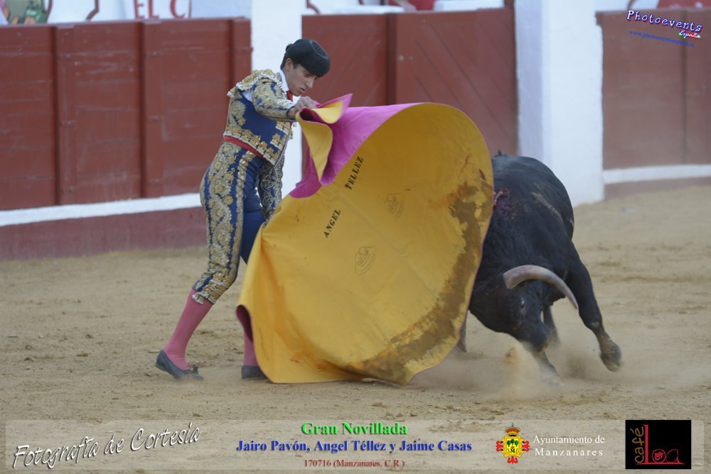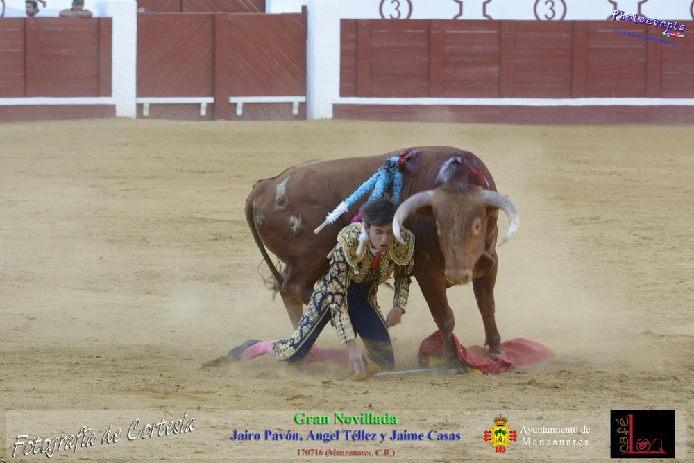 Fotografías realizadas durante la novillada que tuvo lugar en la plaza de Toros de Manzanares , con motivo de la Feria y Fiestas, para los novilleros Jairo Pavón , Ángel Tellez y Jaime Casas. Lidiando 6 novillos de las ganaderías Fernando Peña y el Jaral de la Mira. El evento tuvo lugar el pasado día 170716 en la localidad de Manzanares, Ciudad Real