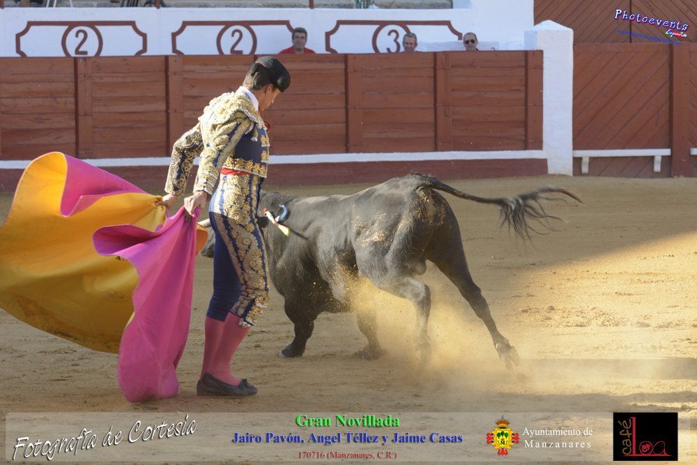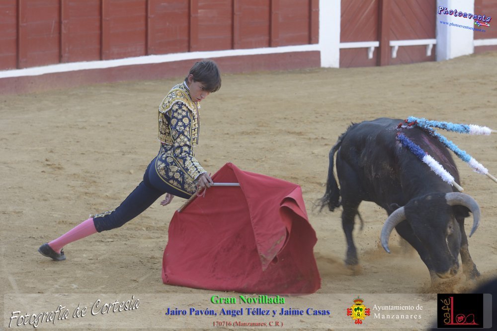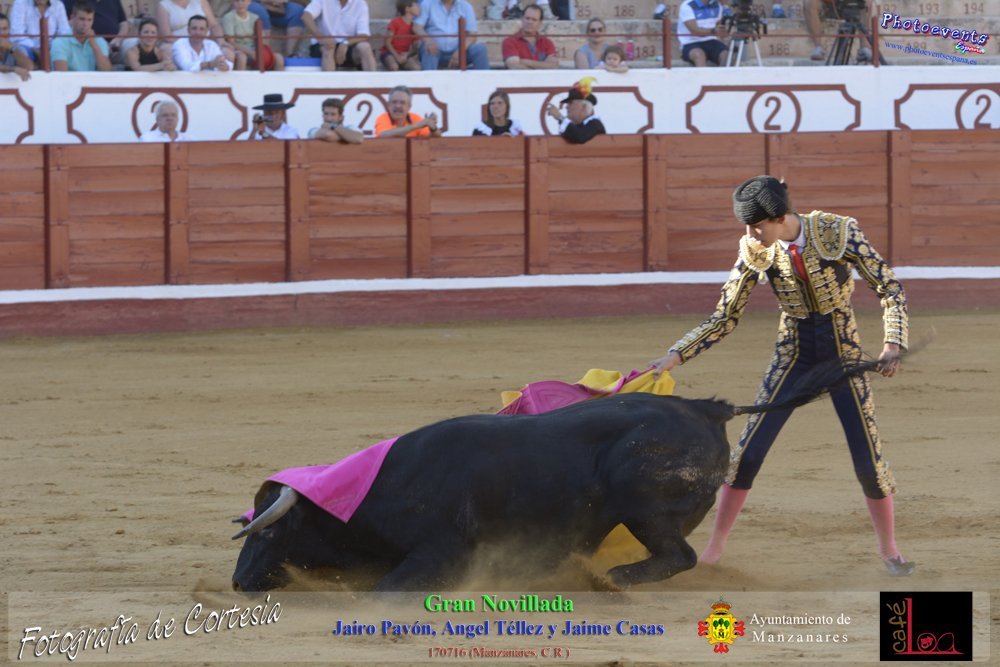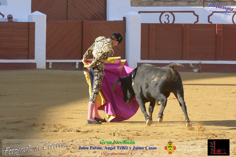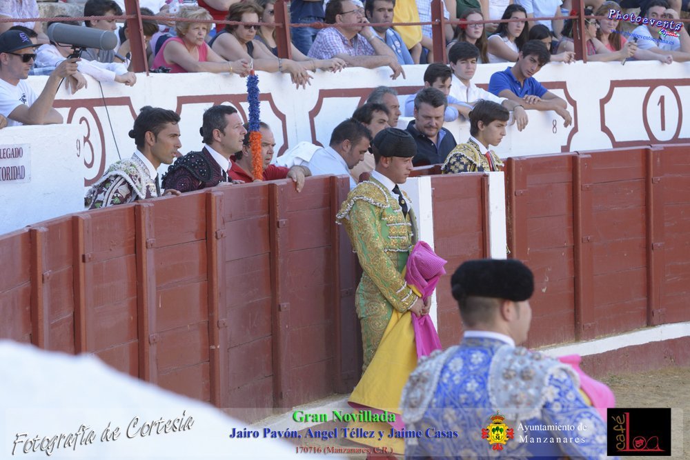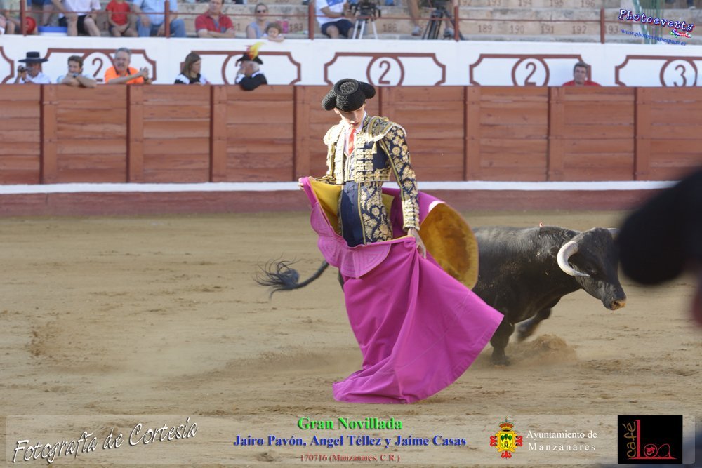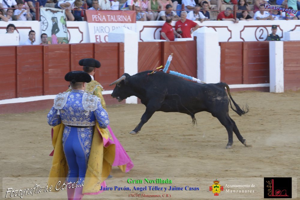 Fotografías realizadas durante la novillada que tuvo lugar en la plaza de Toros de Manzanares , con motivo de la Feria y Fiestas, para los novilleros Jairo Pavón , Ángel Tellez y Jaime Casas. Lidiando 6 novillos de las ganaderías Fernando Peña y el Jaral de la Mira. El evento tuvo lugar el pasado día 170716 en la localidad de Manzanares, Ciudad Real