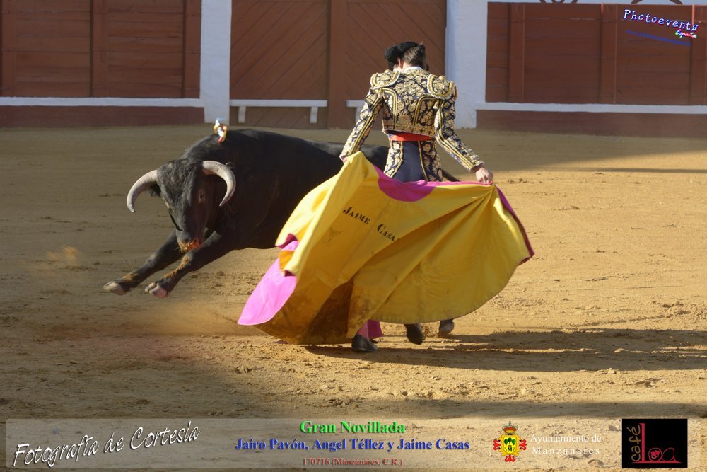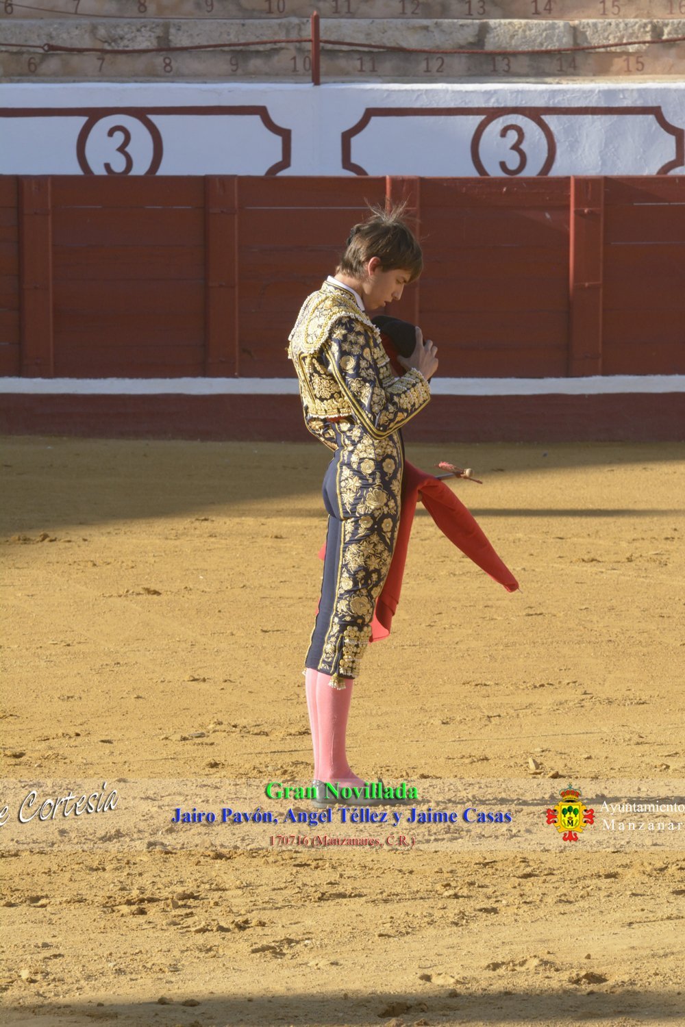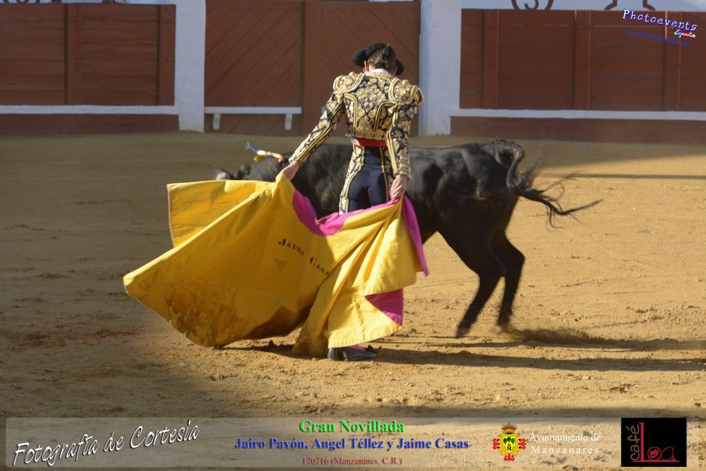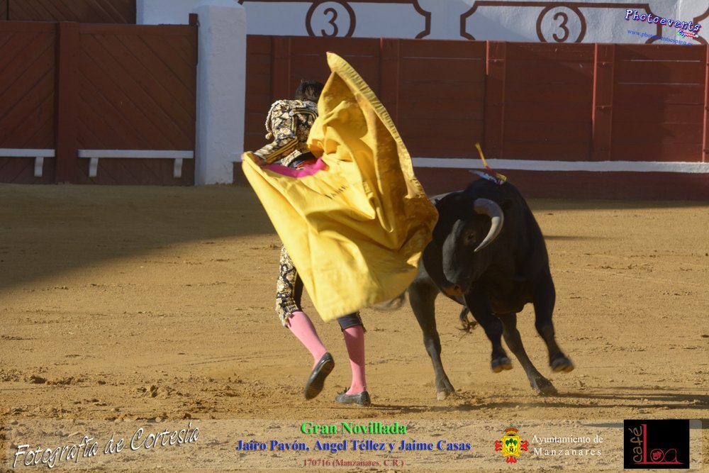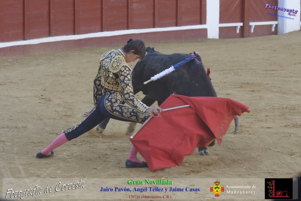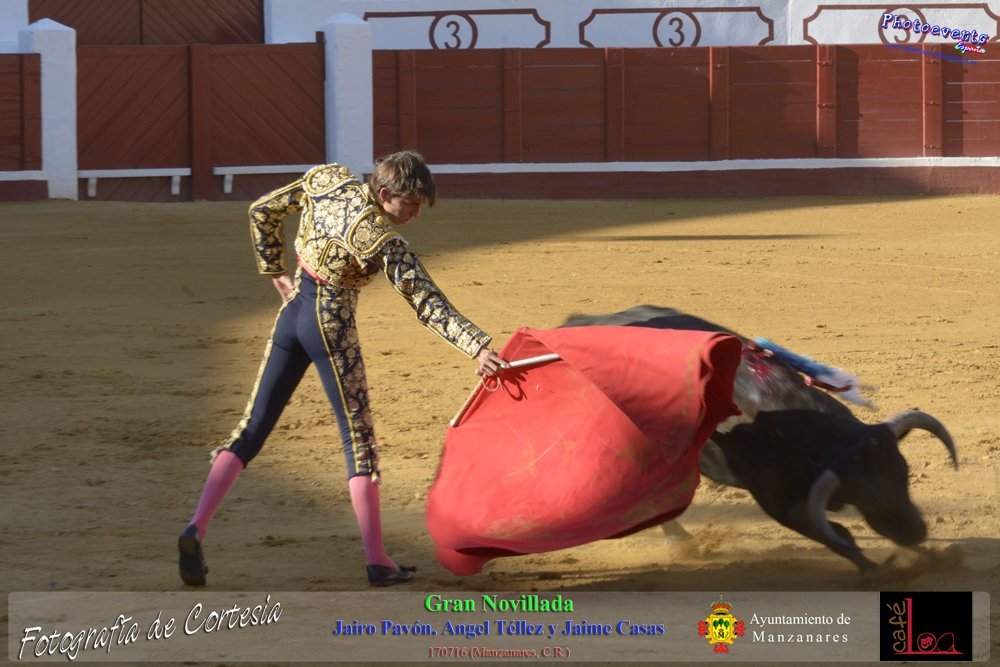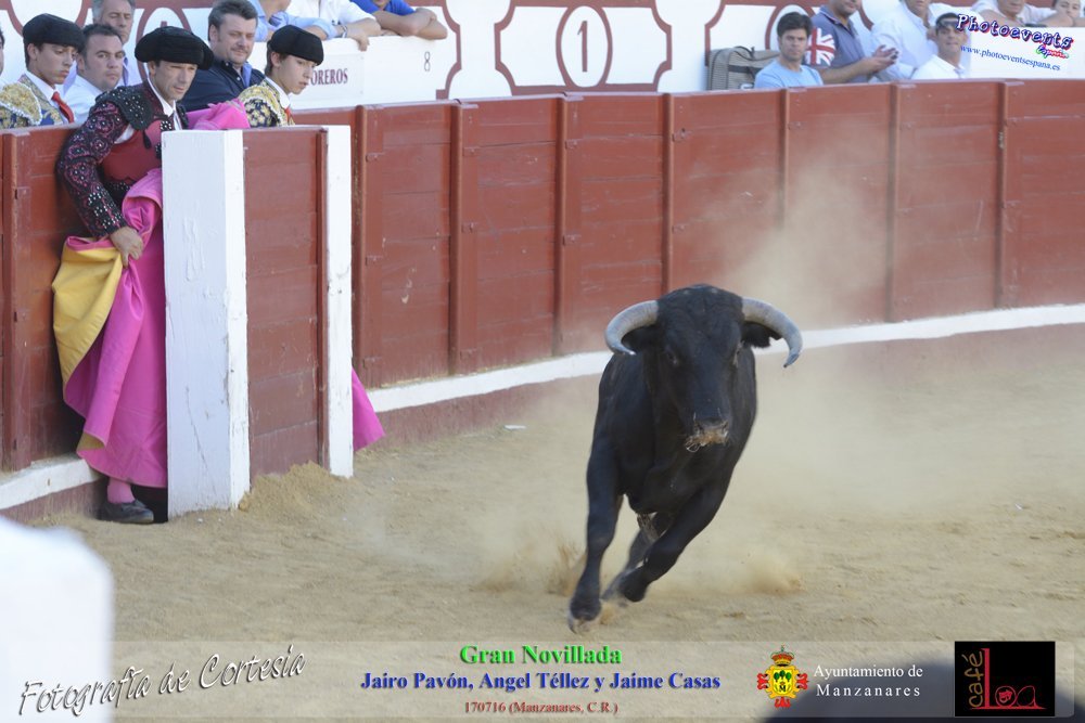 Fotografías realizadas durante la novillada que tuvo lugar en la plaza de Toros de Manzanares , con motivo de la Feria y Fiestas, para los novilleros Jairo Pavón , Ángel Tellez y Jaime Casas. Lidiando 6 novillos de las ganaderías Fernando Peña y el Jaral de la Mira. El evento tuvo lugar el pasado día 170716 en la localidad de Manzanares, Ciudad Real