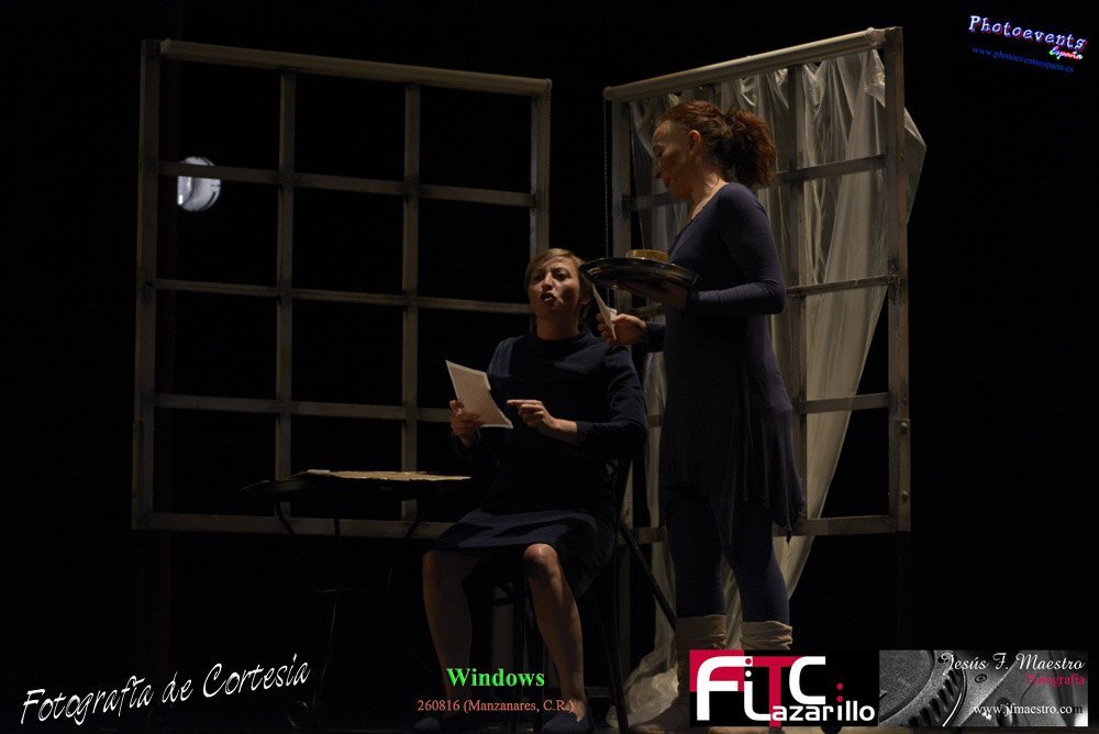 Fotografías realizadas durante la representación de la obra Windows, protagonizada por Esther Velategui y Eva Sanz, cde la Cía Escena Miriñaque , enmarcada dentro del 42 Festival FITC Lazarillo, el día 260816 en en el Gran Teatro de la localidad de Manzanare, Ciudad Real .