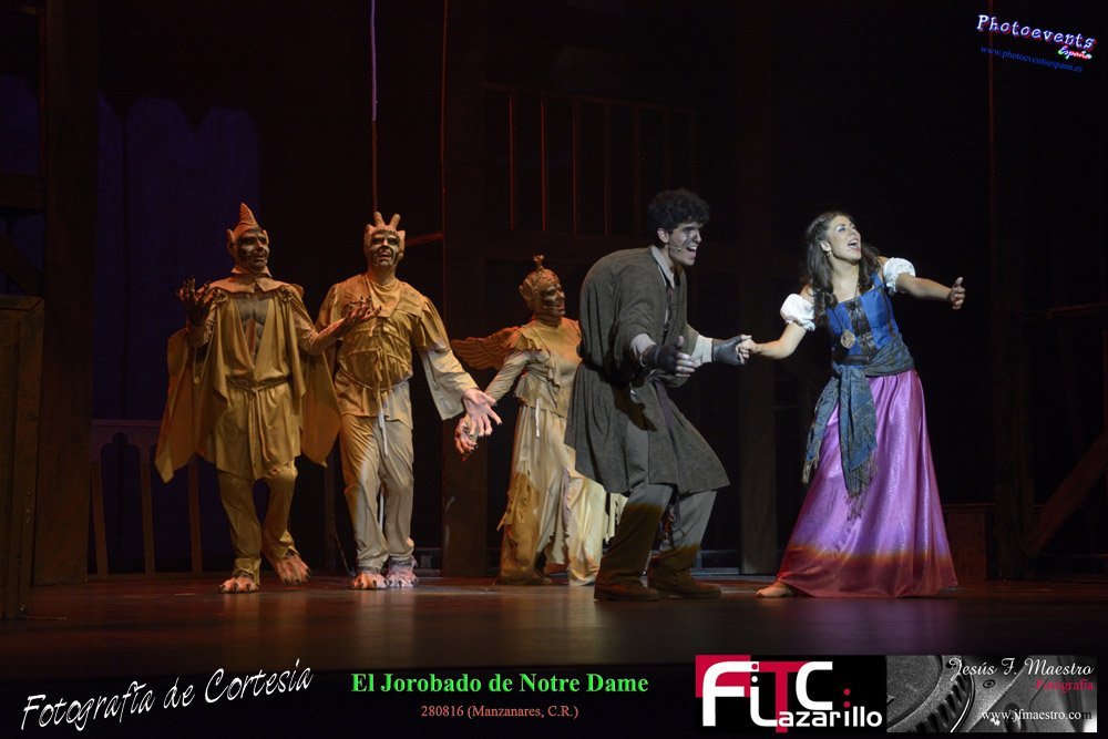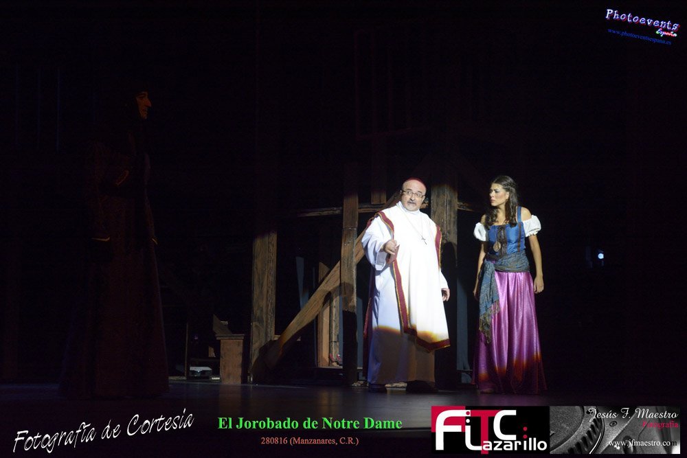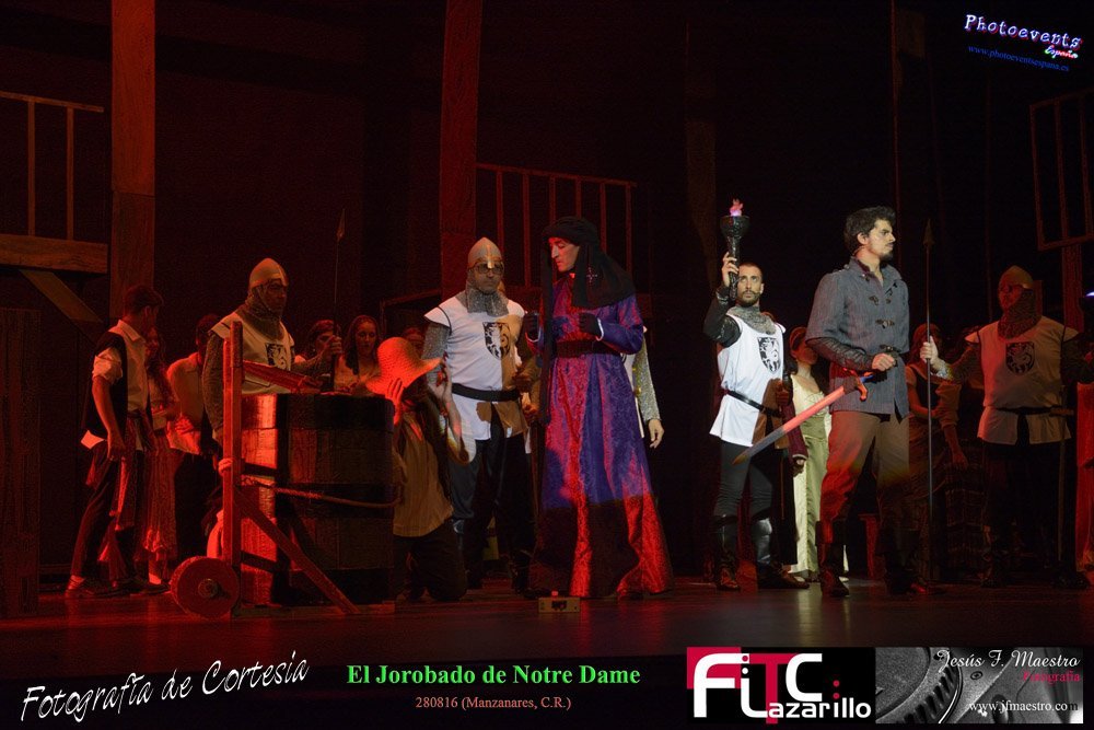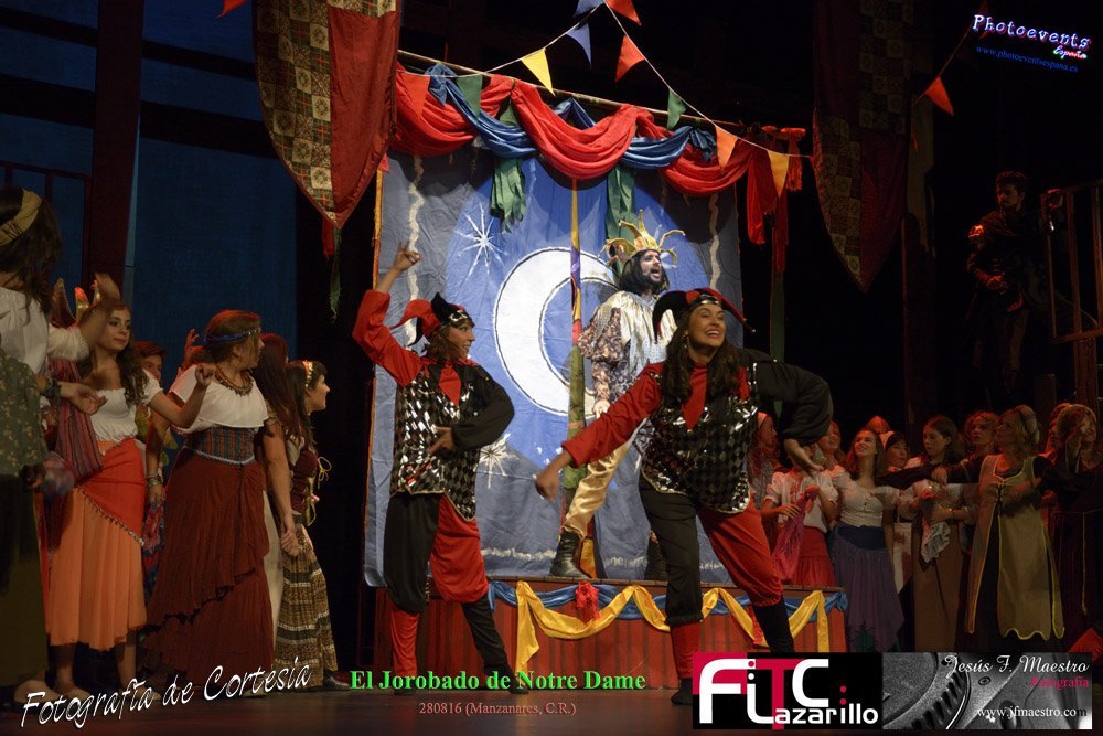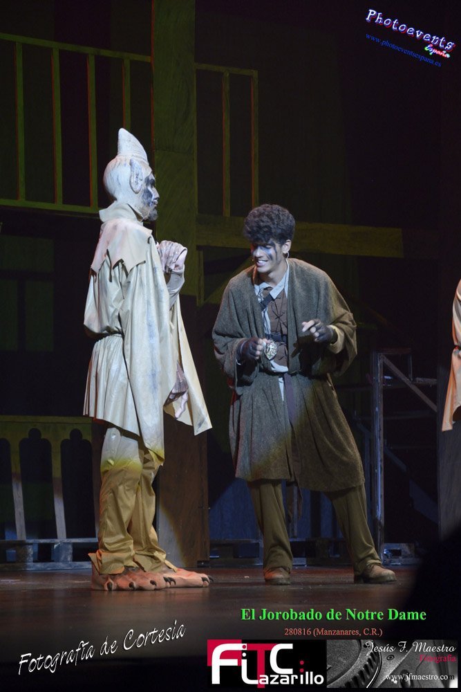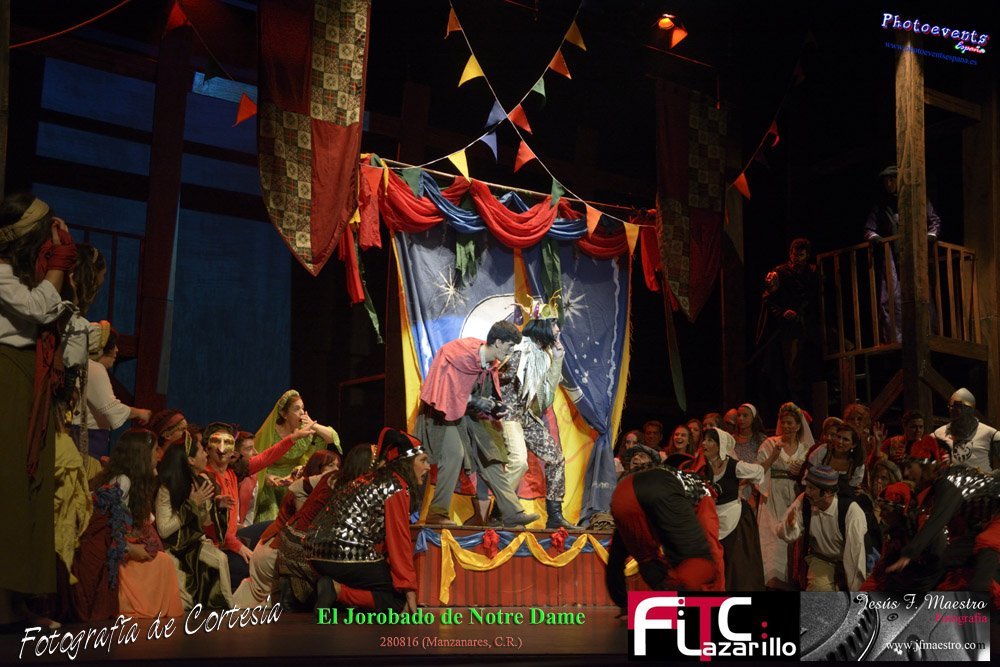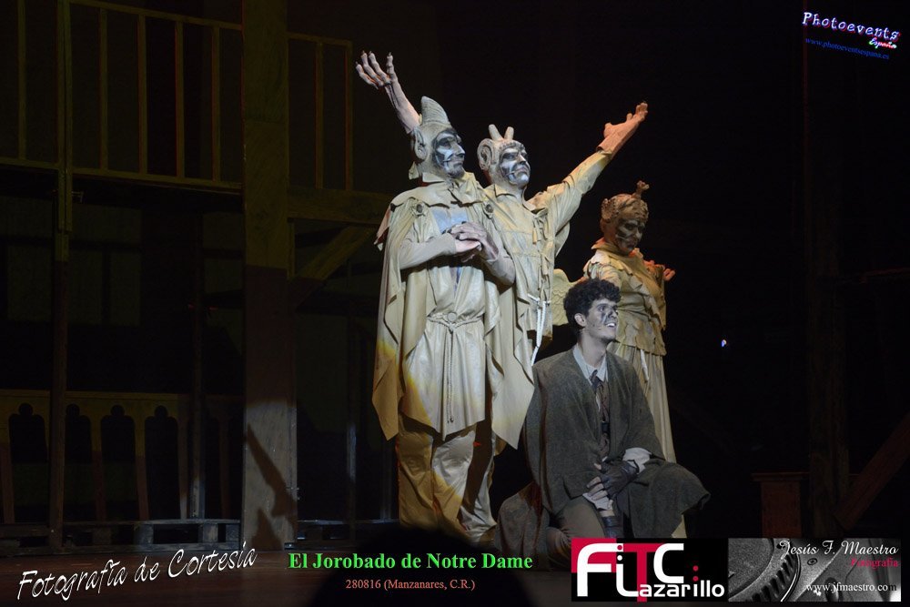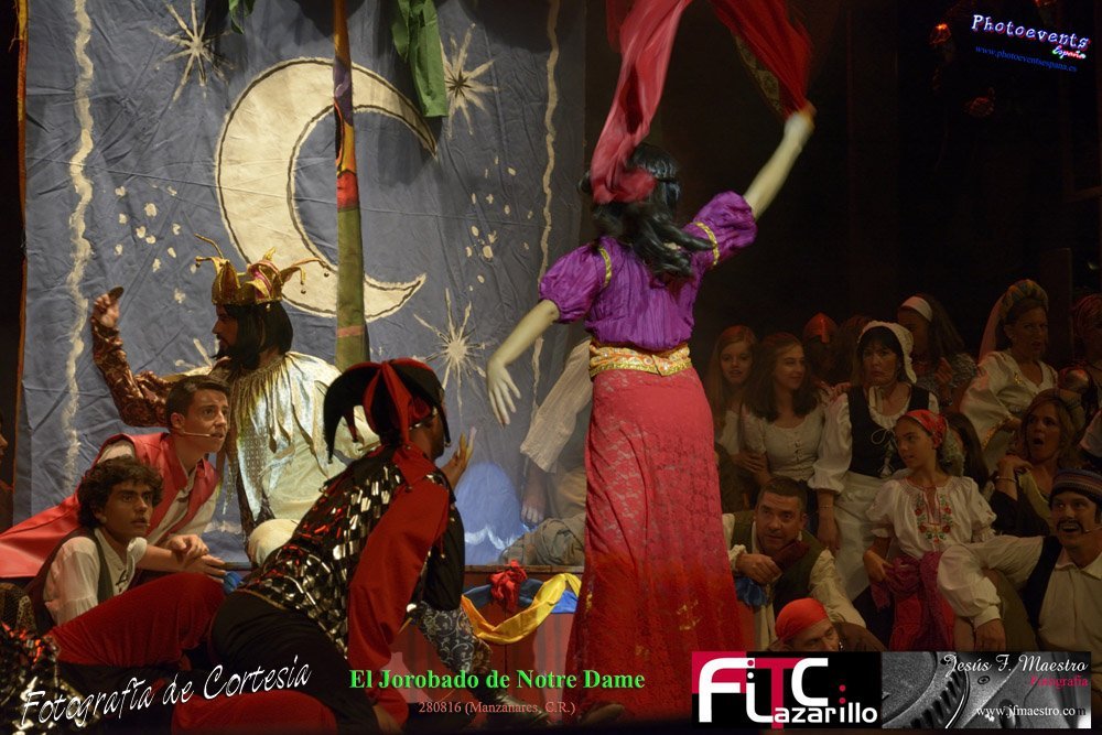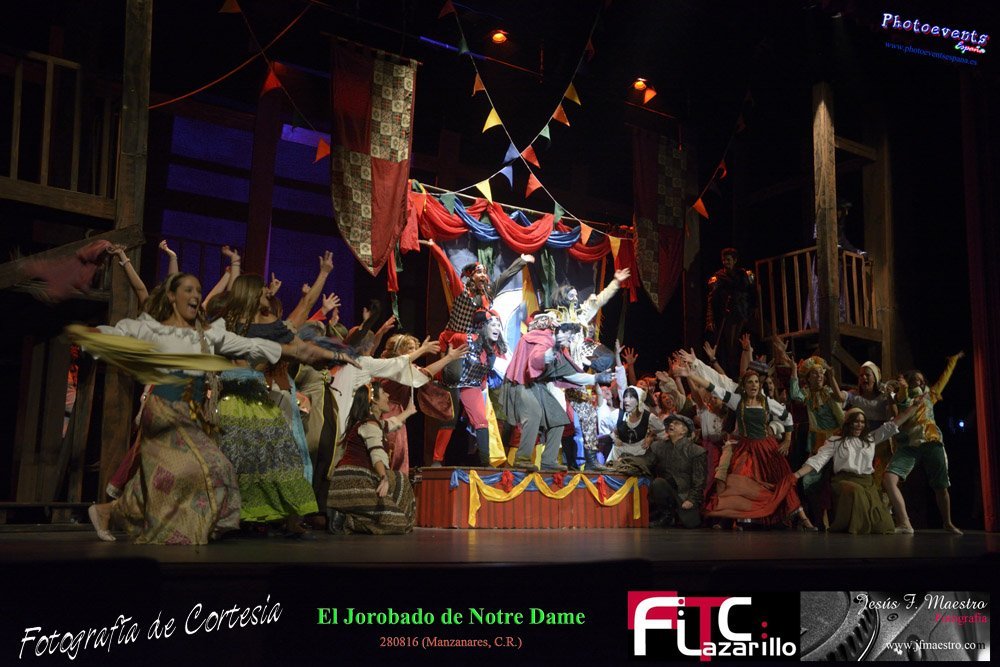 Fotografías realizadas durante el espectáculo musical "El Jorobado de Notre Dame", con una puesta en escena por mas de 100 personas entre actores y técnicos pertenecientes a la Cía. Lorenzo Medina de Valdepeñas. Y que se encargarón de llenar el GranTeatro de Manzanares, poniendo el punto y final al 42 Festival FITC Lazarillo, el día 280816 en la localidad de Manzanare, Ciudad Real .