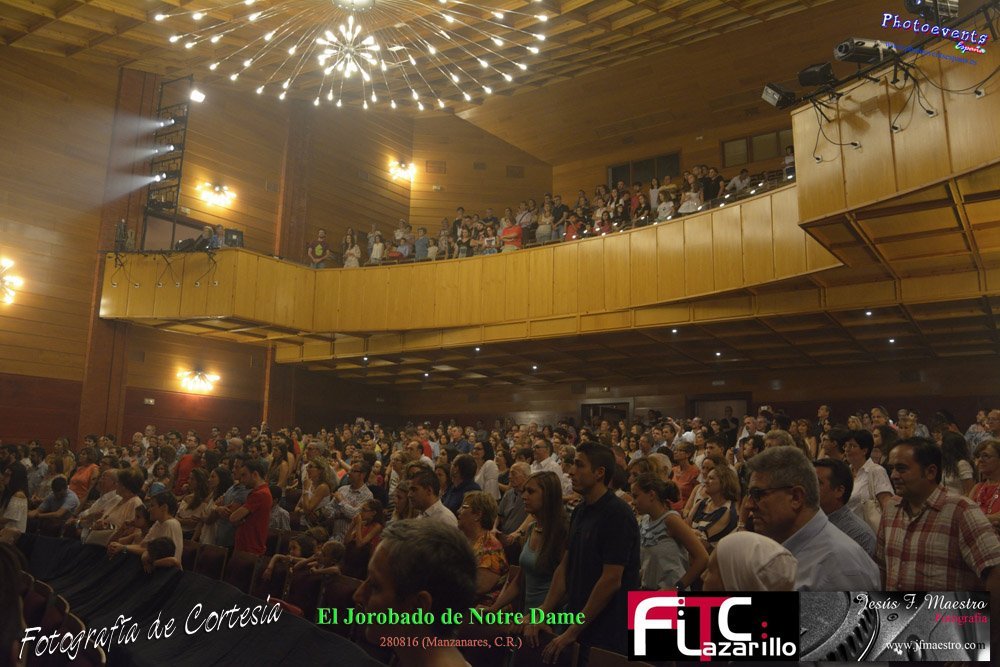 Fotografías realizadas durante el espectáculo musical "El Jorobado de Notre Dame", con una puesta en escena por mas de 100 personas entre actores y técnicos pertenecientes a la Cía. Lorenzo Medina de Valdepeñas. Y que se encargarón de llenar el GranTeatro de Manzanares, poniendo el punto y final al 42 Festival FITC Lazarillo, el día 280816 en la localidad de Manzanare, Ciudad Real .