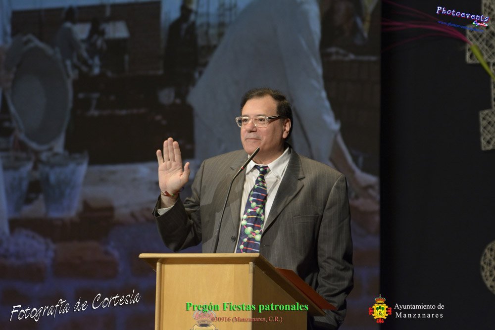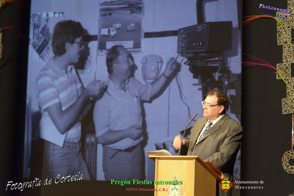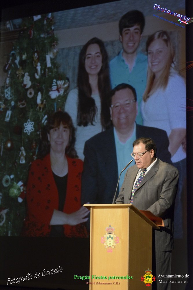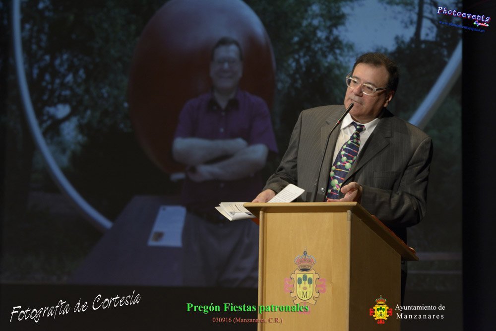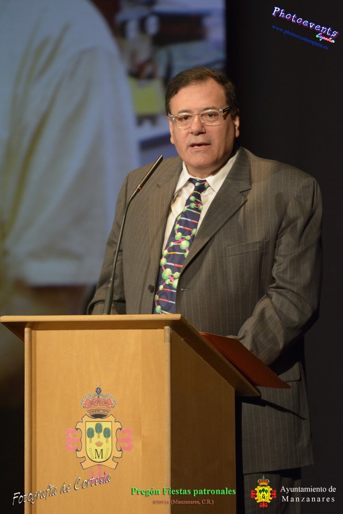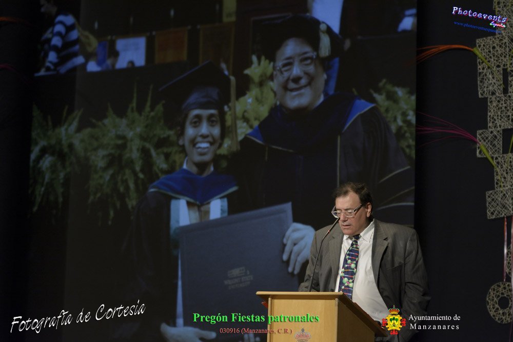 Fotografías realizadas durante el pregón de las fiestas patronales 2016, en honor a Nuestro Padre Jesús del Perdón, siendo el encargado este año D. Julián Gomez-Cambronero Pacheco (Hijo Predilecto de Manzanares), que recogió el testigo de la mano del pregonero del pasado año 2015 D. Jerónimo Calero Calero. El acto contó con la presencia de distintos miembros de la corporación municipal y provincial, asi como miembros de la Hermandad Ntro. Padre Jesús del Perdón. El acto tuvo lugar el día 030916 en el Gran Teatro de la localidad de Manzanare, Ciudad Real .