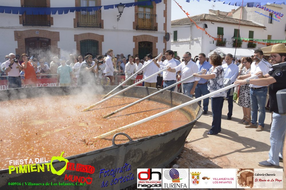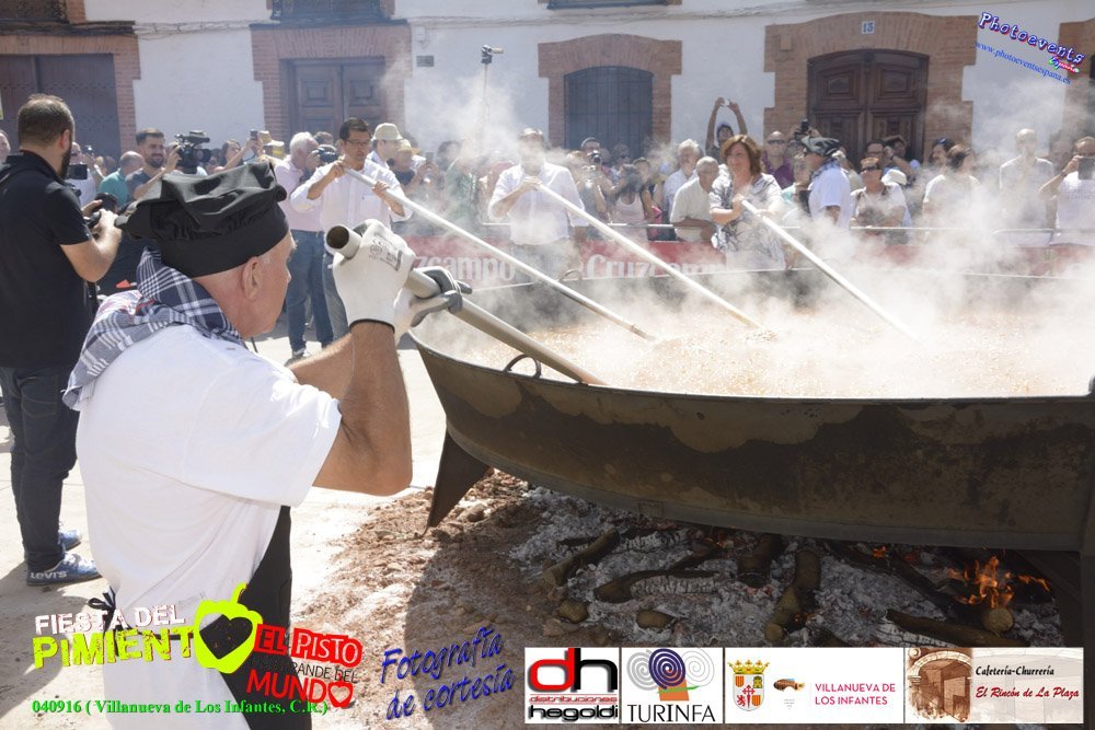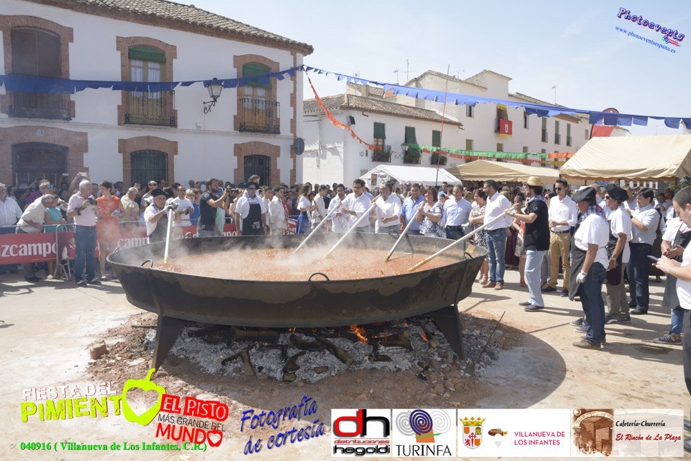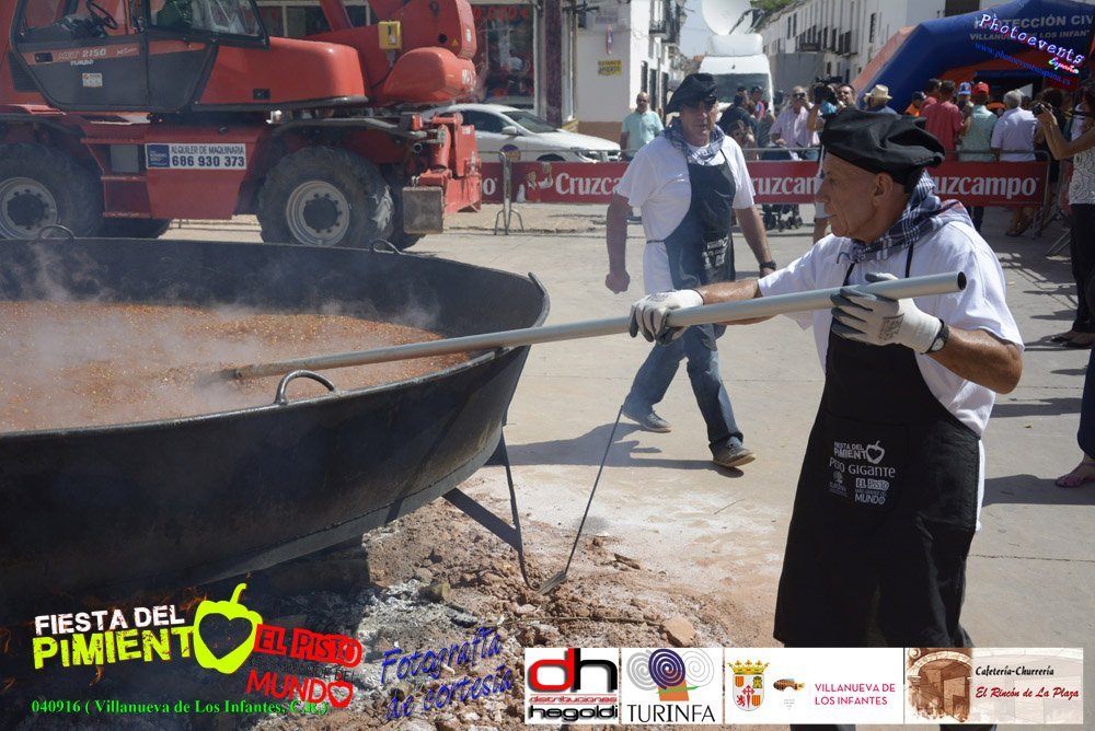 Fotografías realizadas durante la preparación del pisto mas grande del mundo, el cual ha sido certificado con el RECORD GUINNESS como el pisto mas grande del mundo, con un peso total de 1254 kgr., superando de esta forma con creces los 563 kilos del popular plato francés, el "ratatouille", que ostentaba Disney. El pisto gigante se realizó el pasado día 4 de Septiembre y estaba enmarcado dentro de las fiestas del pimiento que anualmente a comienzos de Septiembre se celebra en la localidad de Vva. de los Infantes, (Ciudad Real-España).