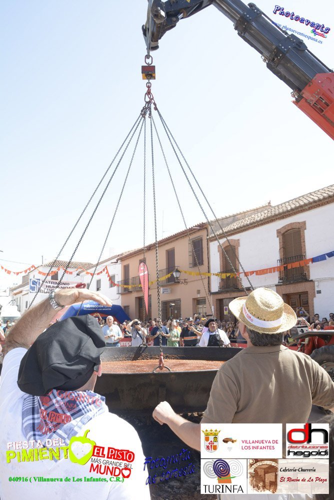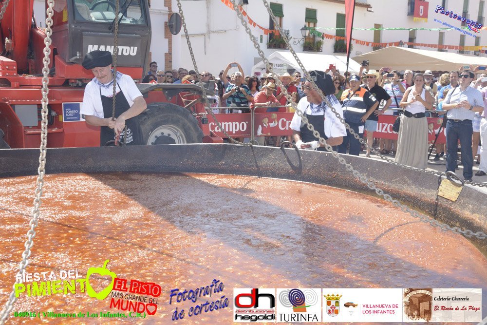 Fotografías realizadas durante la preparación del pisto mas grande del mundo, el cual ha sido certificado con el RECORD GUINNESS como el pisto mas grande del mundo, con un peso total de 1254 kgr., superando de esta forma con creces los 563 kilos del popular plato francés, el "ratatouille", que ostentaba Disney. El pisto gigante se realizó el pasado día 4 de Septiembre y estaba enmarcado dentro de las fiestas del pimiento que anualmente a comienzos de Septiembre se celebra en la localidad de Vva. de los Infantes, (Ciudad Real-España).