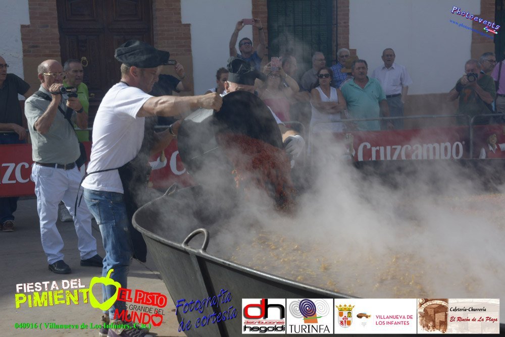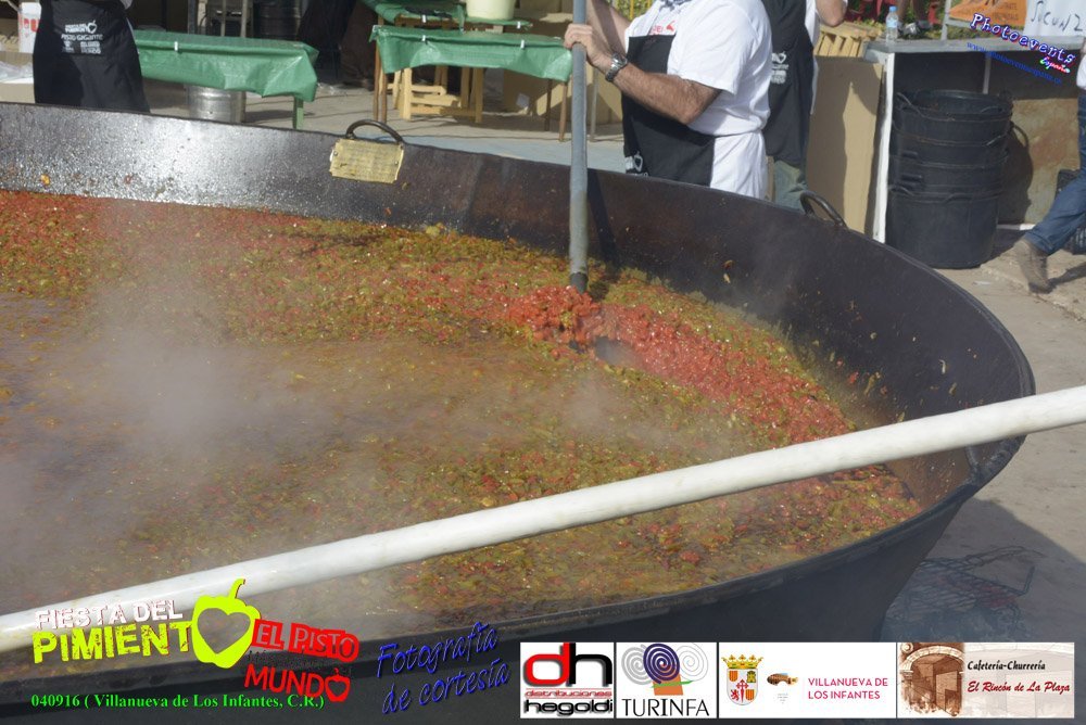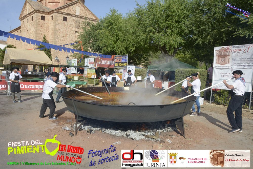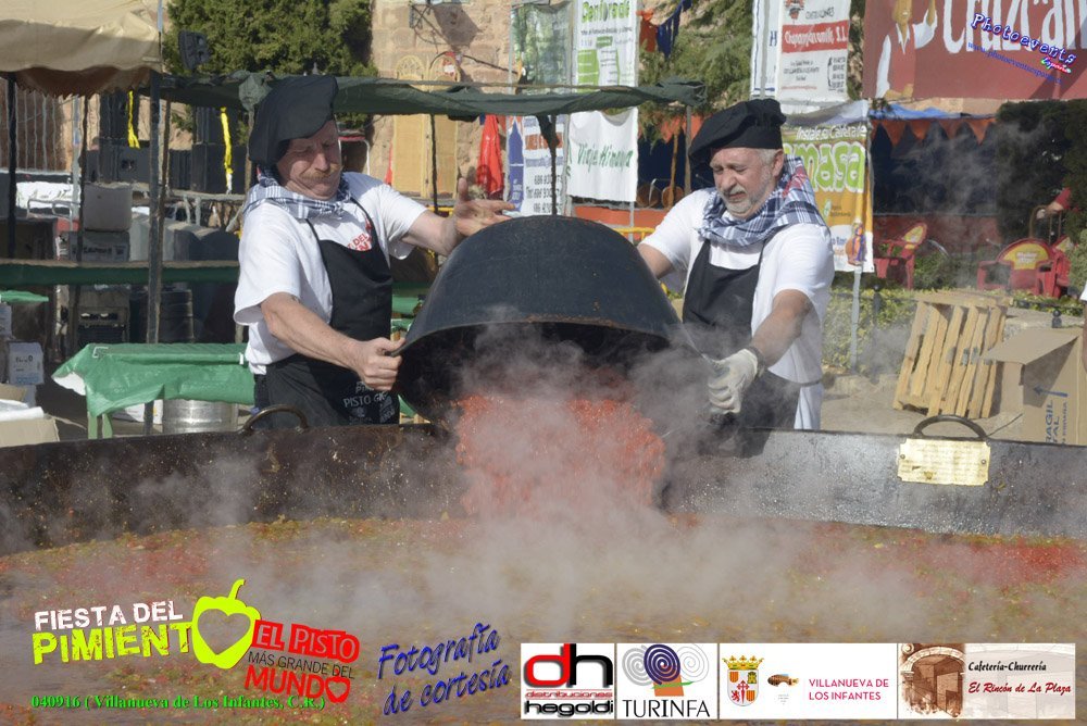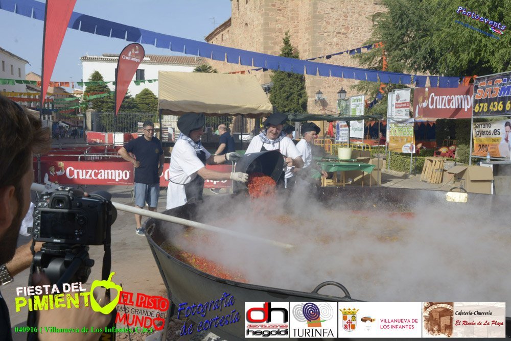 Fotografías realizadas durante la preparación del pisto mas grande del mundo, el cual ha sido certificado con el RECORD GUINNESS como el pisto mas grande del mundo, con un peso total de 1254 kgr., superando de esta forma con creces los 563 kilos del popular plato francés, el "ratatouille", que ostentaba Disney. El pisto gigante se realizó el pasado día 4 de Septiembre y estaba enmarcado dentro de las fiestas del pimiento que anualmente a comienzos de Septiembre se celebra en la localidad de Vva. de los Infantes, (Ciudad Real-España).