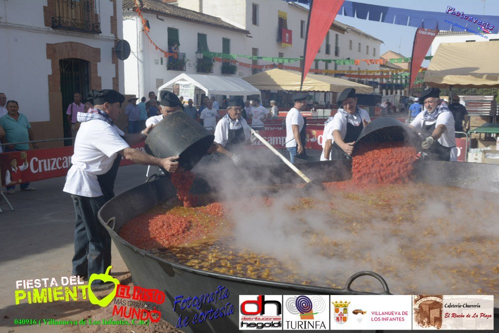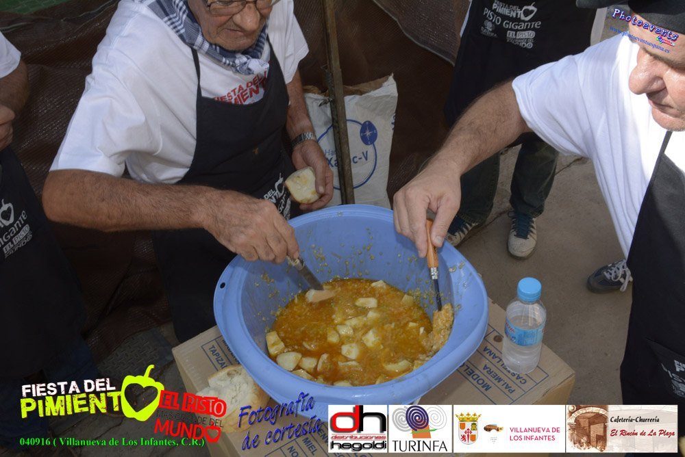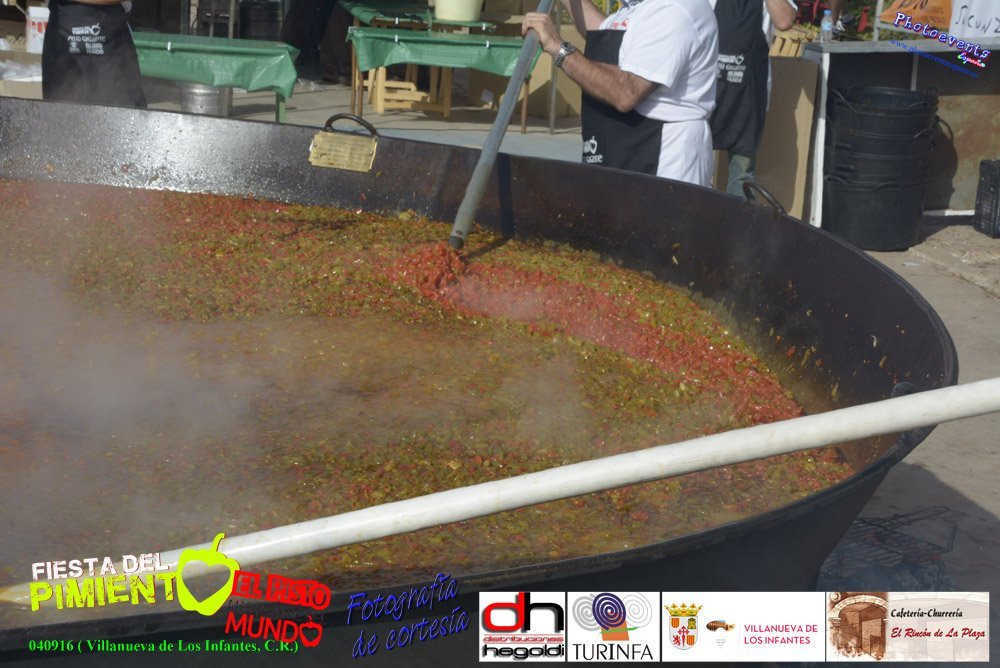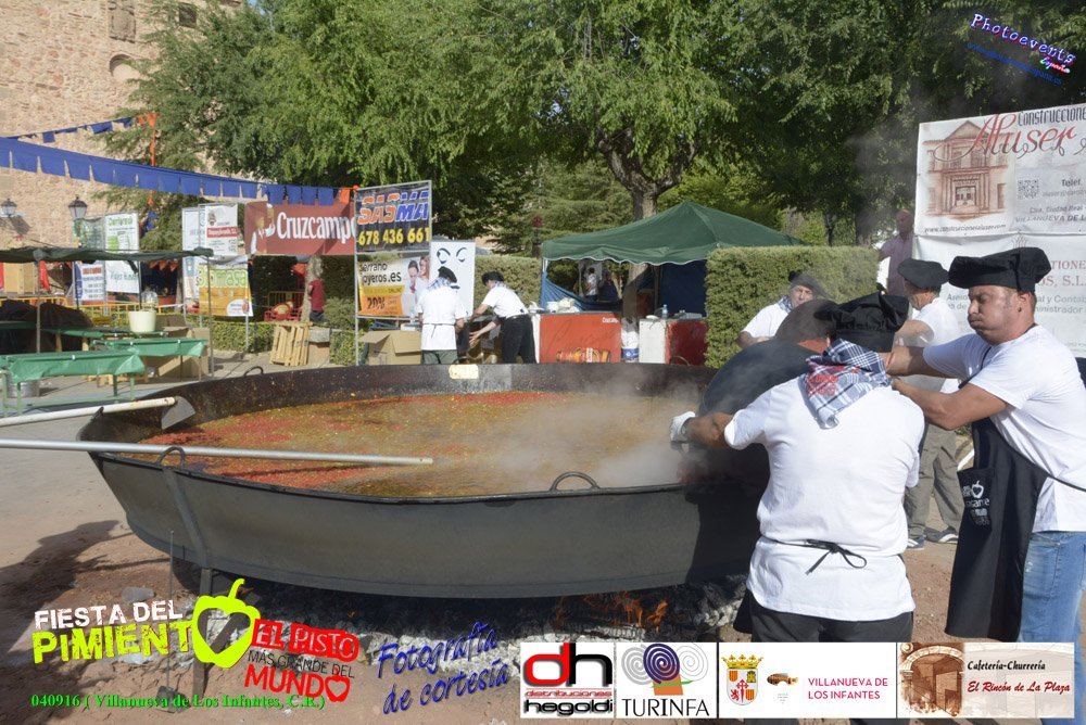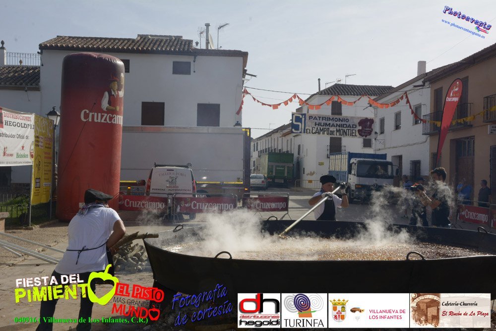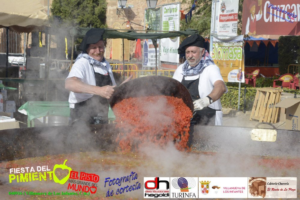 Fotografías realizadas durante la preparación del pisto mas grande del mundo, el cual ha sido certificado con el RECORD GUINNESS como el pisto mas grande del mundo, con un peso total de 1254 kgr., superando de esta forma con creces los 563 kilos del popular plato francés, el "ratatouille", que ostentaba Disney. El pisto gigante se realizó el pasado día 4 de Septiembre y estaba enmarcado dentro de las fiestas del pimiento que anualmente a comienzos de Septiembre se celebra en la localidad de Vva. de los Infantes, (Ciudad Real-España).