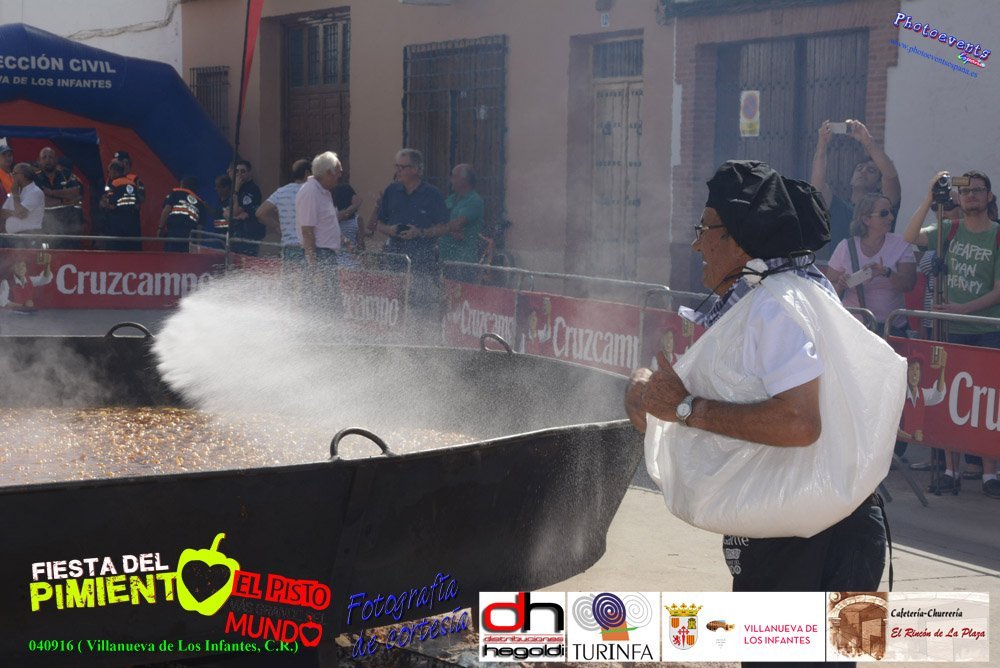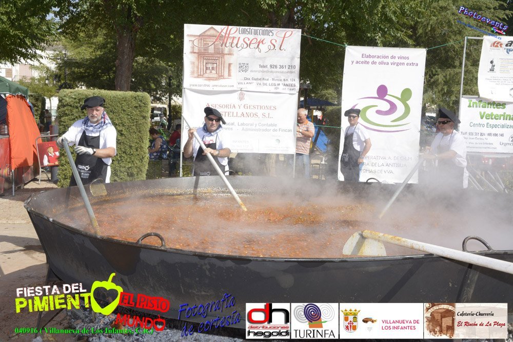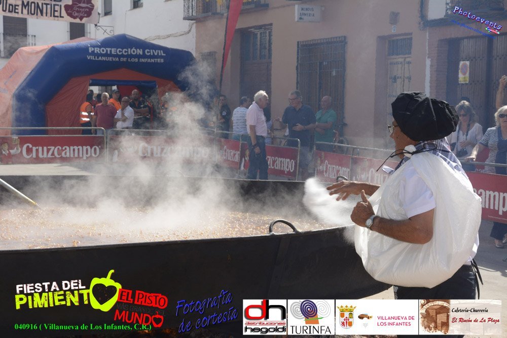 Fotografías realizadas durante la preparación del pisto mas grande del mundo, el cual ha sido certificado con el RECORD GUINNESS como el pisto mas grande del mundo, con un peso total de 1254 kgr., superando de esta forma con creces los 563 kilos del popular plato francés, el "ratatouille", que ostentaba Disney. El pisto gigante se realizó el pasado día 4 de Septiembre y estaba enmarcado dentro de las fiestas del pimiento que anualmente a comienzos de Septiembre se celebra en la localidad de Vva. de los Infantes, (Ciudad Real-España).
